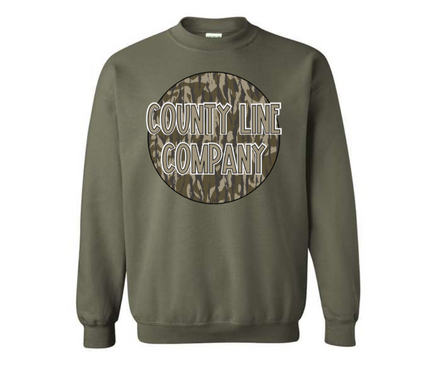 Experience comfort and style with the County Line Camo Crewneck, perfect for outdoor adventures or casual wear with its trendy and functional design.