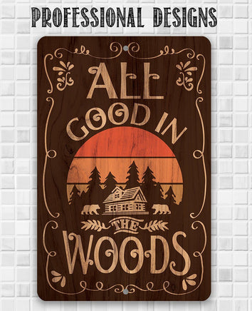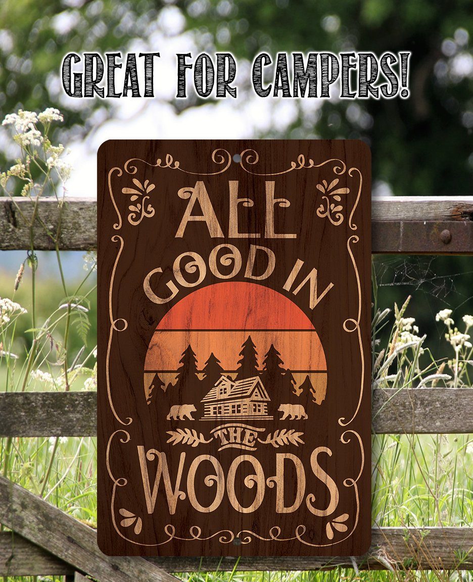 Tin - All Good In The Woods - Metal Sign - 8"x12" or 12"x18" Use Indoor/Outdoor - Cabin or Farmhouse Decor and Gift