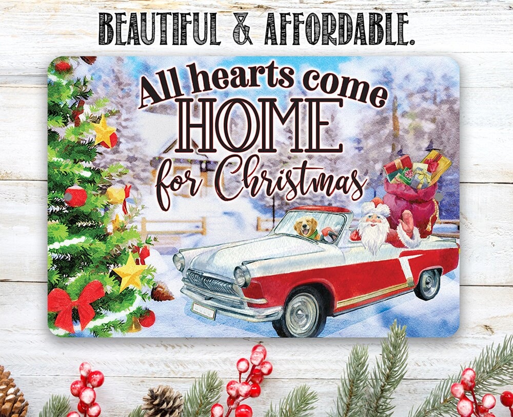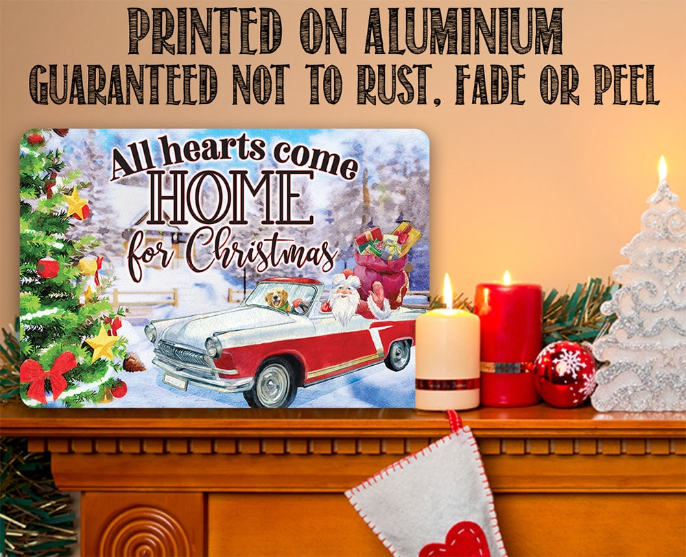 Christmas Home Decor - All Hearts Come Home For Christmas - 8" x 12" or 12" x 18" Aluminum Tin Awesome Metal Poster