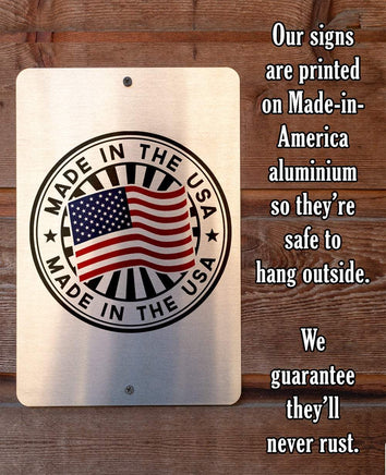 Durable - 8" x 12" or 12" x 18" Aluminum metal sign printed with epoxy ink so you can hang it inside or outside