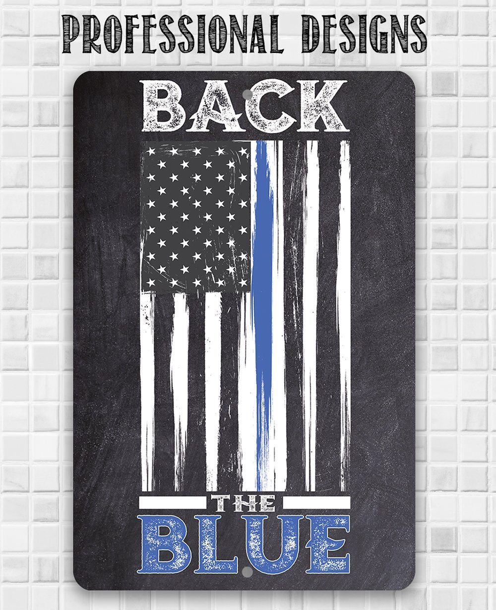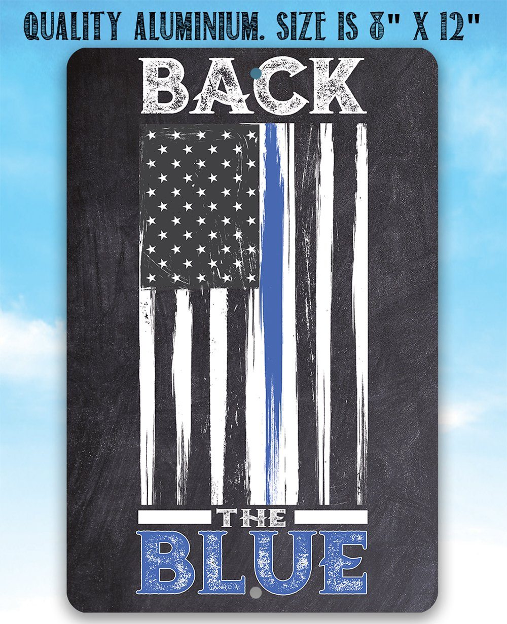Metal Sign - Back The Blue - Durable Metal Sign - 8" x 12" or 12" x 18" Use Indoor/Outdoor - Makes a Great Gift for Law Enforcement Officers