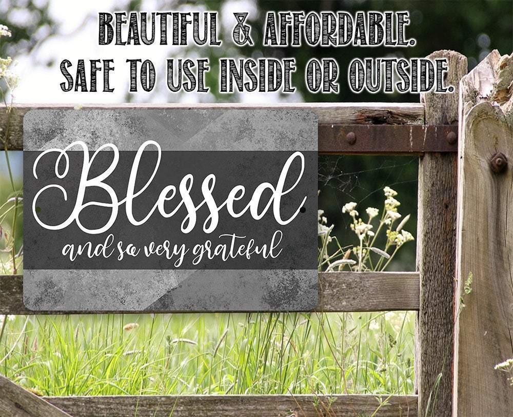 Blessed and Grateful-Durable Metal Sign- 8" x 12" or 12" x 18" - Use Indoor/Outdoor-Dining Room Decor -The Perfect Gift - A truly unique gift guaranteed to bring a smile Durable - 8" x 12" or 12" x 18" Aluminum metal sign printed with epoxy ink so you can hang it inside or outside Easy to Hang - Comes with two screw holes and it's light enough to be mounted with double-sided foam tape or Command Strips. Guarantee - I´m so sure you´re going to love the sign. Made in the USA (Tomball, Texas) in our family-owned shop