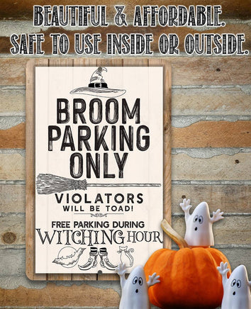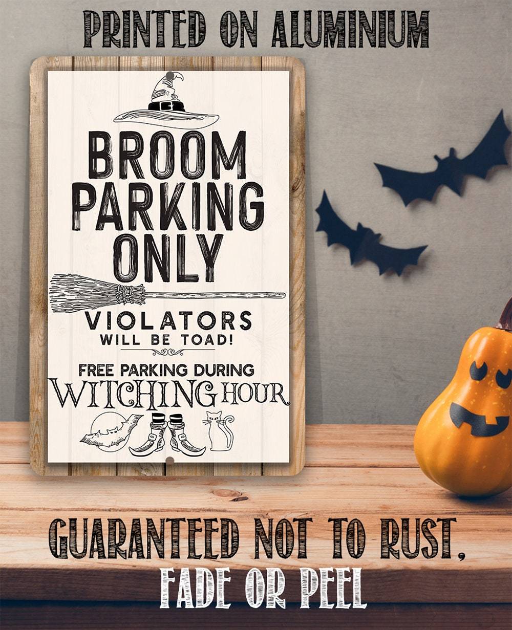 Tin - Metal Sign - Broom Parking - 8"x12"/12"x18" Use Indoor/Outdoor - Cute Halloween Party Decor and Gift
