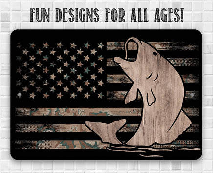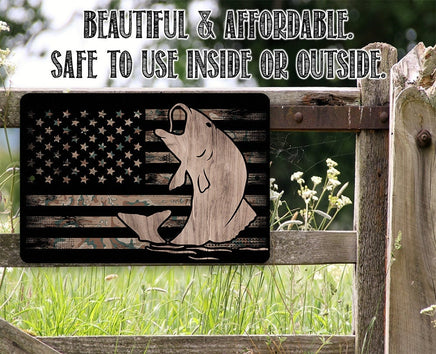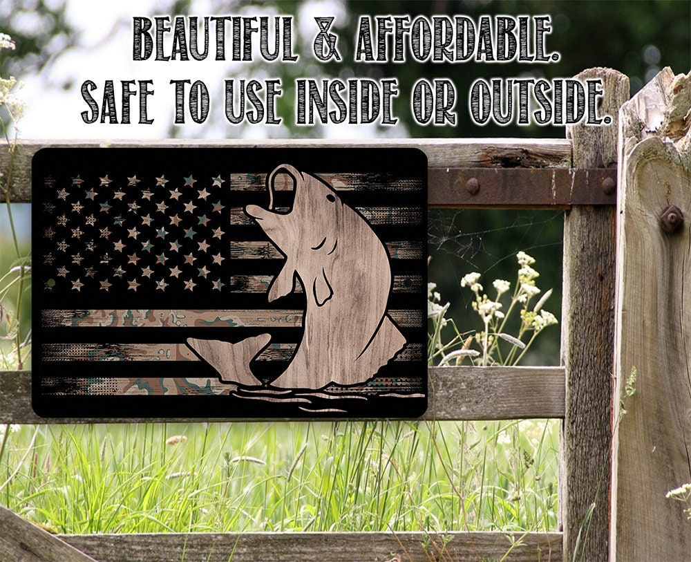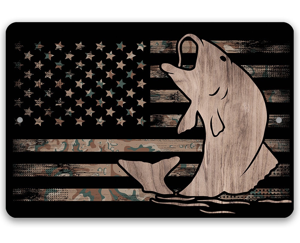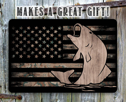 Camouflage American Flag Fishing - 8" x 12" or 12" x 18" Aluminum Tin Awesome Metal Poster