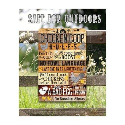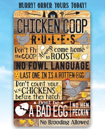 Chicken Coop Sign - Chicken Coop Rules - 8" x 12" or 12" x 18" Aluminum Tin Awesome Metal Poster