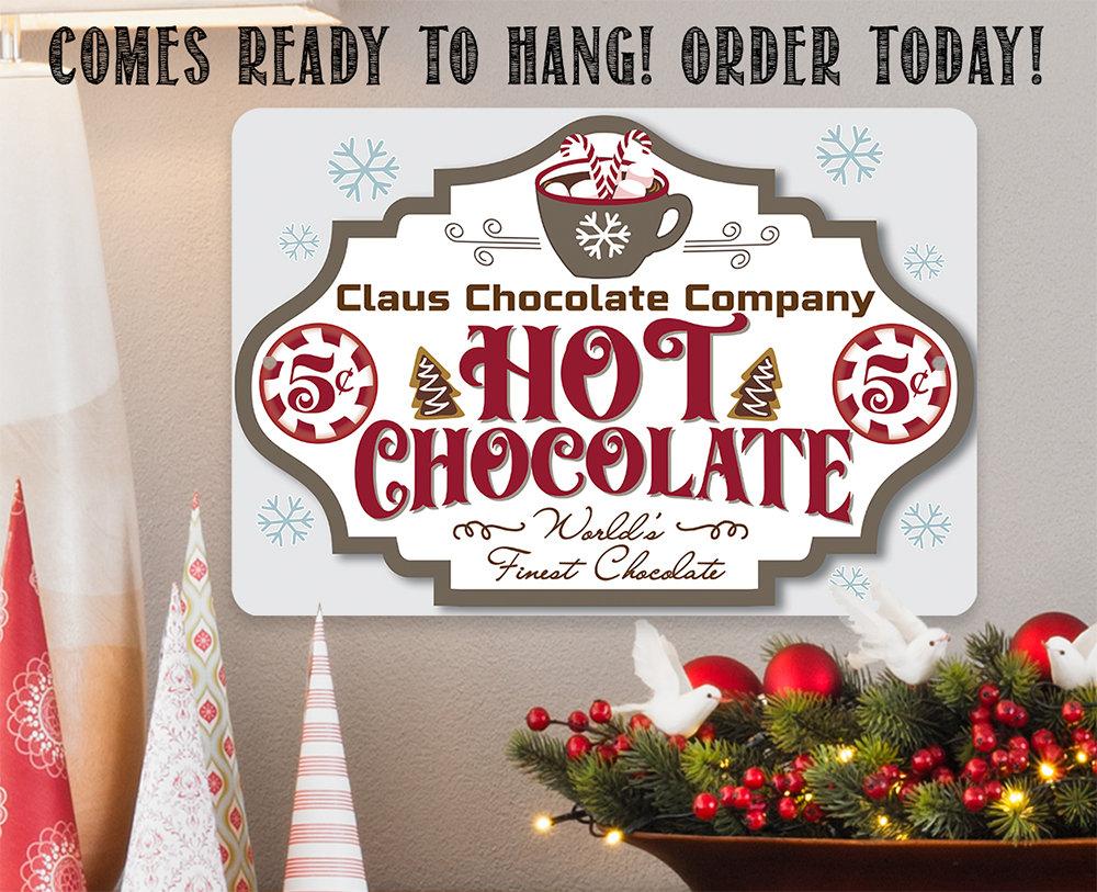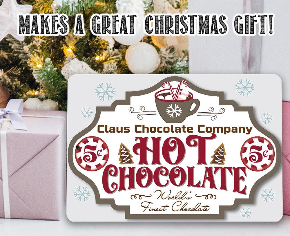 Tin - Claus Chocolate Company Metal Sign - 8" x 12" or 12" x 18" Indoor/Outdoor - Great Christmas Theme Cafe Decor and Gift