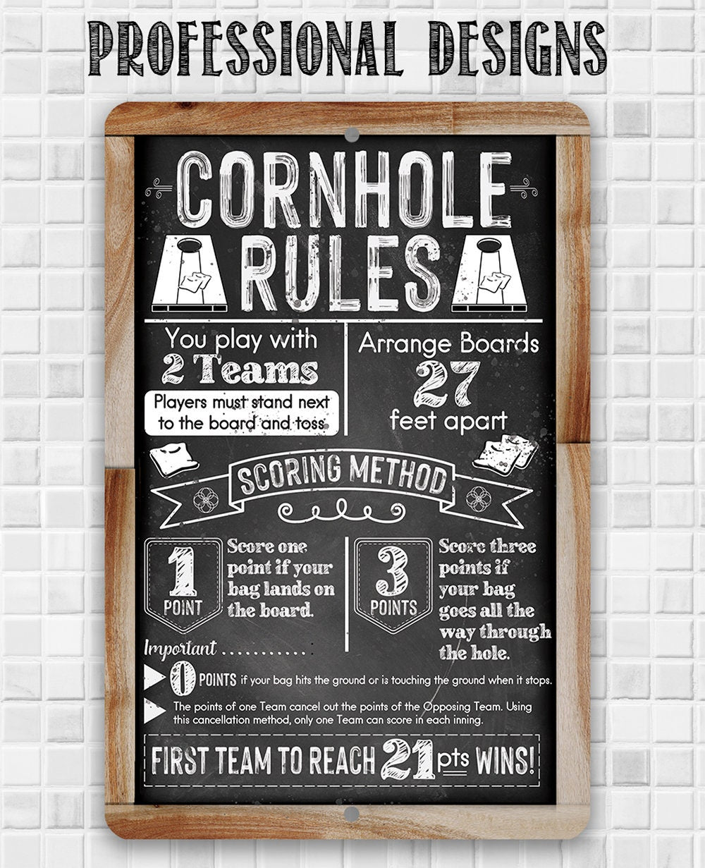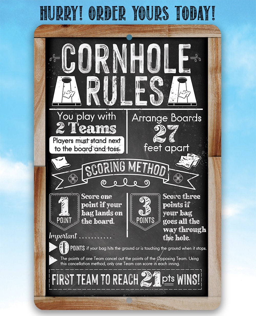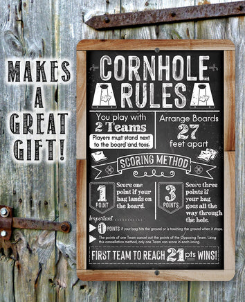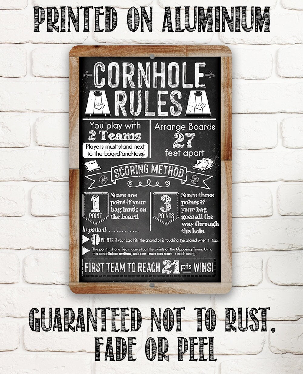 Tin - Cornhole Rules-Chalkboard Style-Metal Sign-Choose 8"x12" or 12"x18" Indoor or Outdoor -Backyard Playground and Event Competition Decor