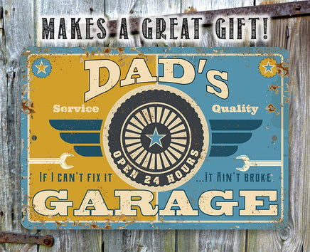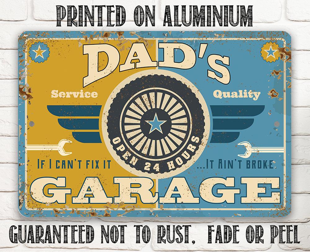 Metal Sign - Dad's Garage - Durable Metal Sign - 8" x 12" or 12" x 18" Use Indoor/Outdoor - Great Gift and Decor for Garage and Man Cave