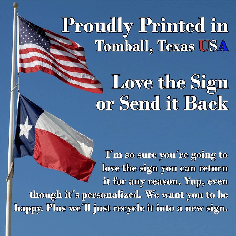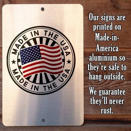 Durable - 8" x 12" or 12" x 18" Aluminum metal sign printed with epoxy ink so you can hang it inside or outside