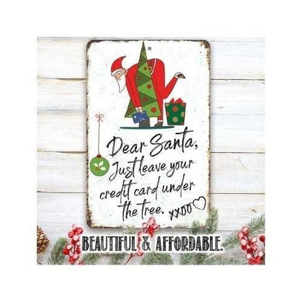 Dear Santa Just Leave Your Credit Card - 8" x 12" or 12" x 18" Aluminum Tin Awesome Metal Poster