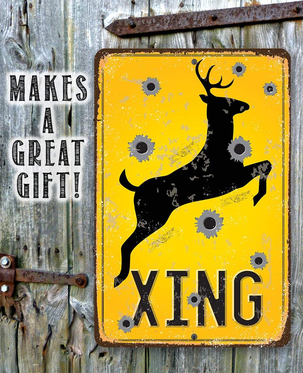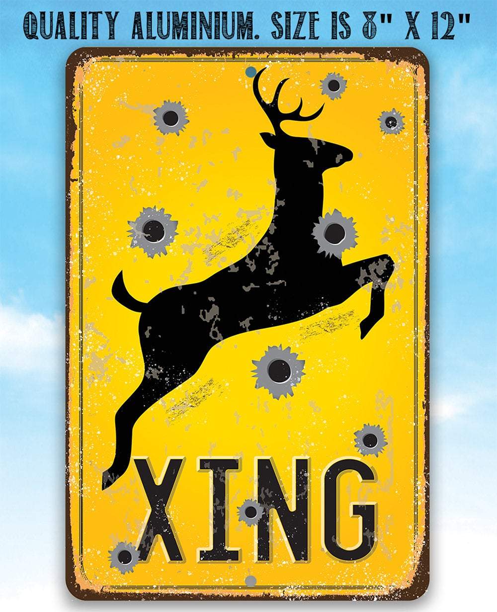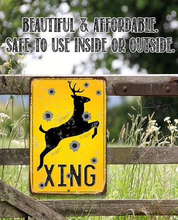 Metal Sign - Deer Xing Metal Sign - Durable Metal Sign - 8" x 12" or 12" x 18" Use Indoor/Outdoor - Great Hunting and Cabin Decor and Gift