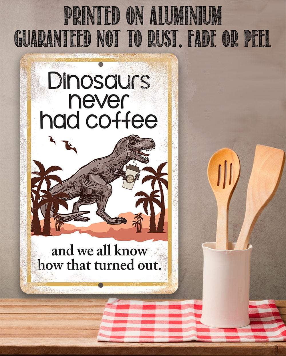 Dinosaurs Never Had Coffee 8" x 12" or 12" x 18" Aluminum Tin Awesome Metal Poster