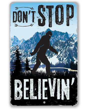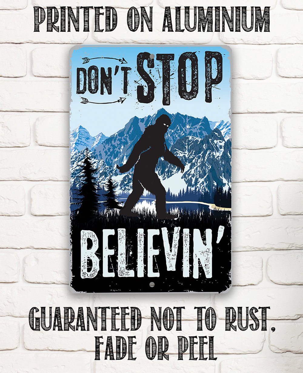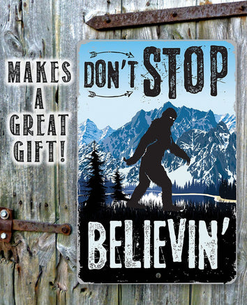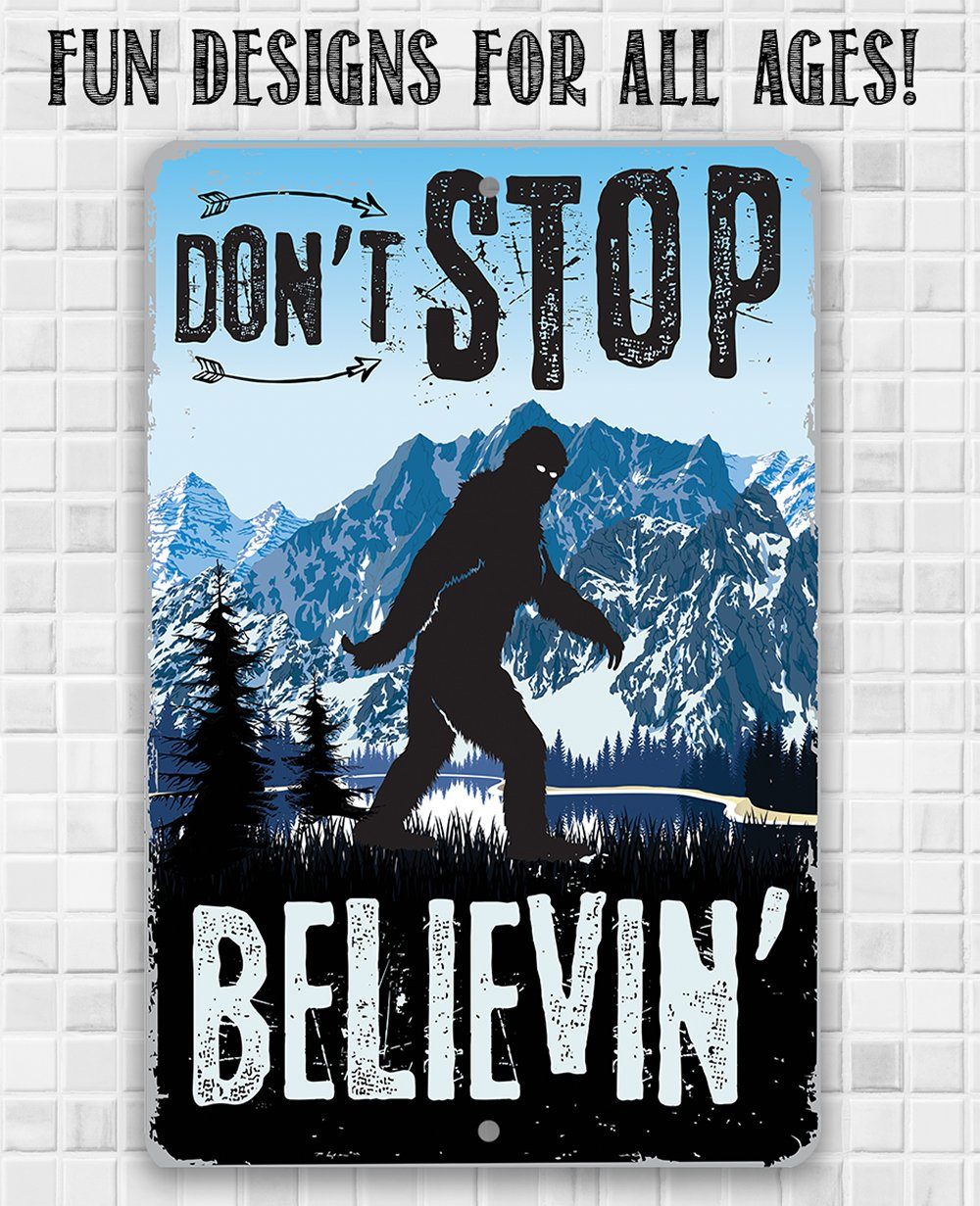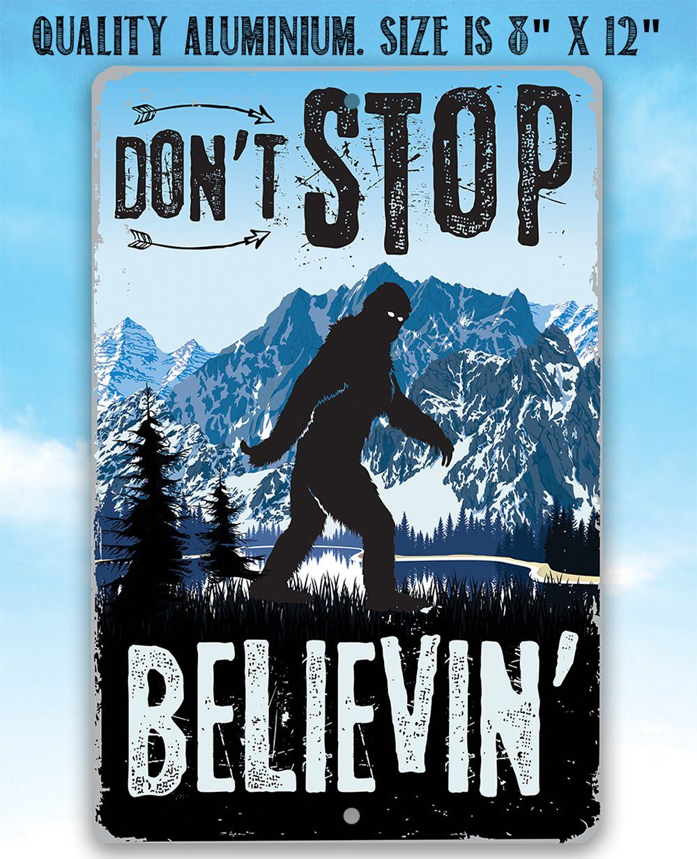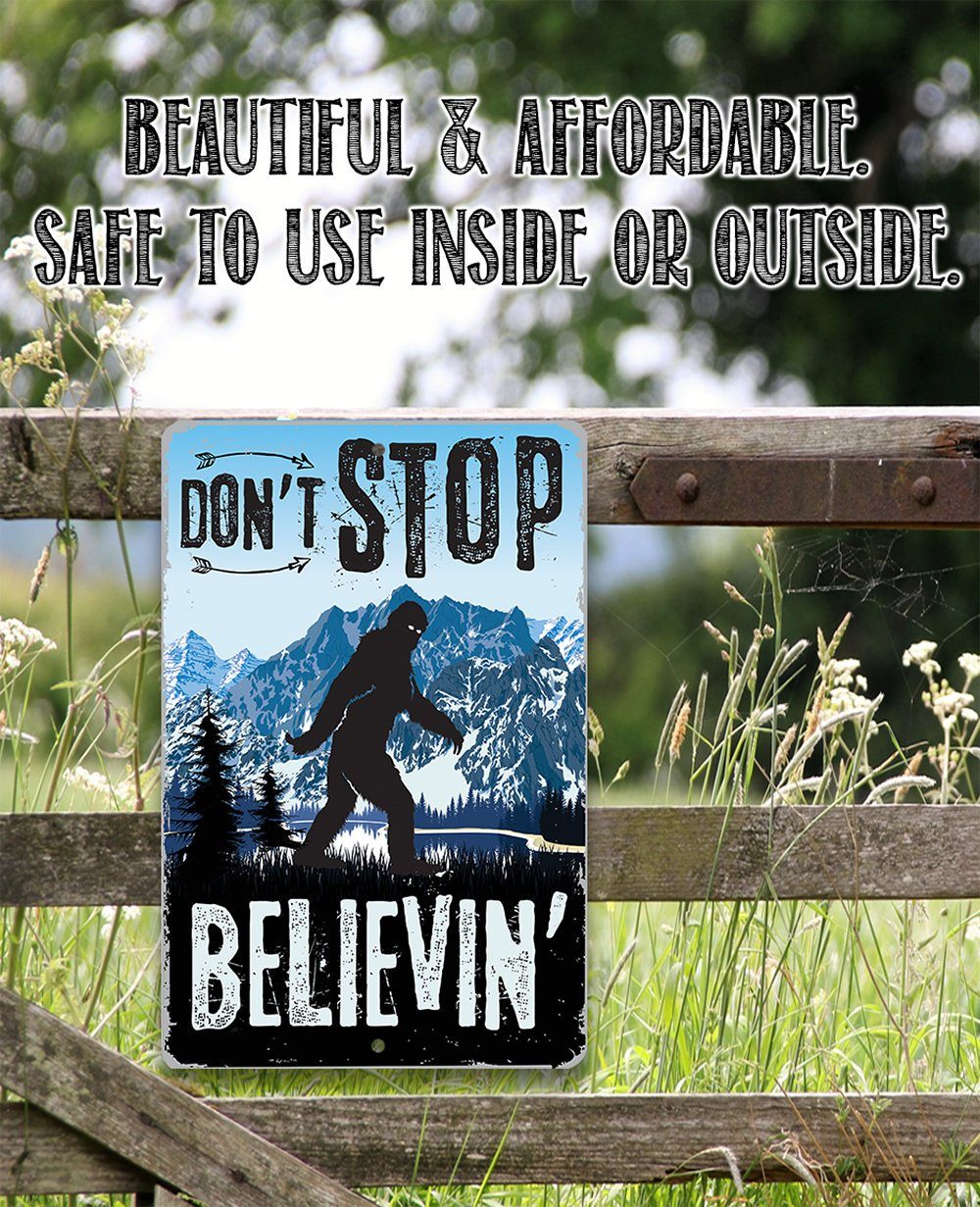 Metal Sign - Don't Stop Believing Big Foot - 8" x 12" or 12" x 18" Use Indoor/Outdoor - Funny Gift and Decor for Cabin and Sasquatch Enthusiasts