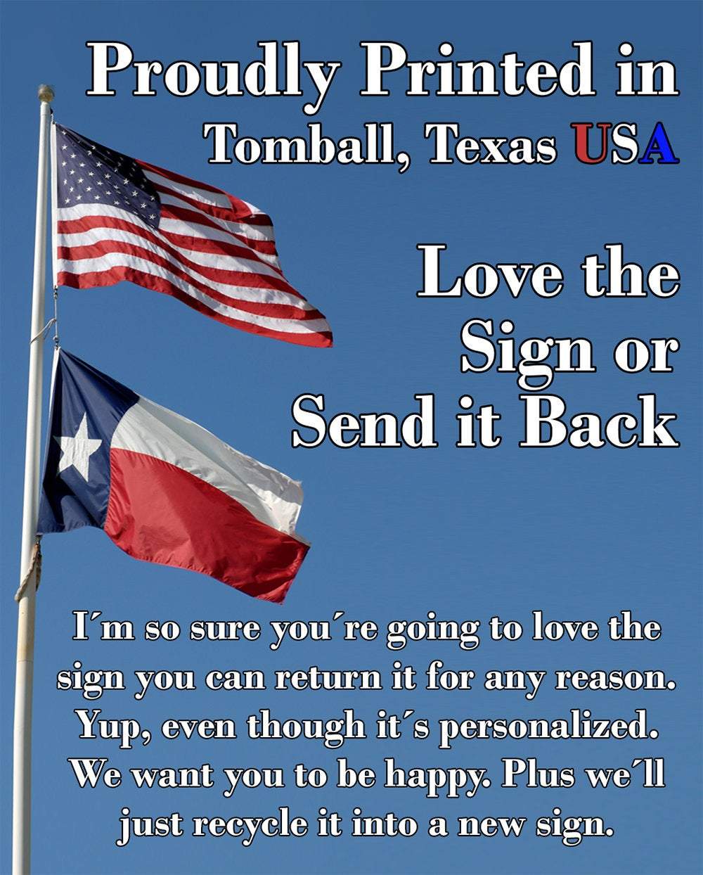 Durable - 8" x 12" or 12" x 18" Aluminum metal sign printed with epoxy ink so you can hang it inside or outside