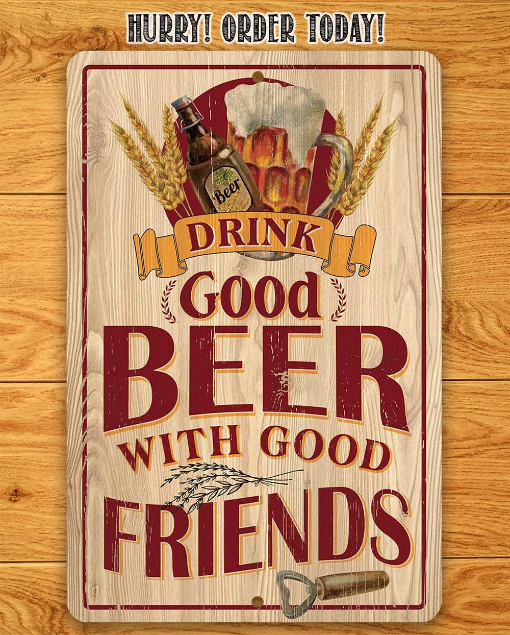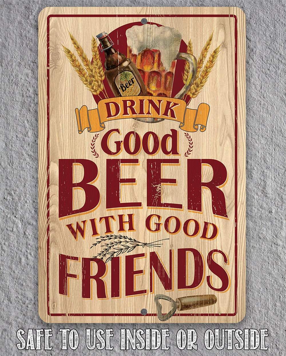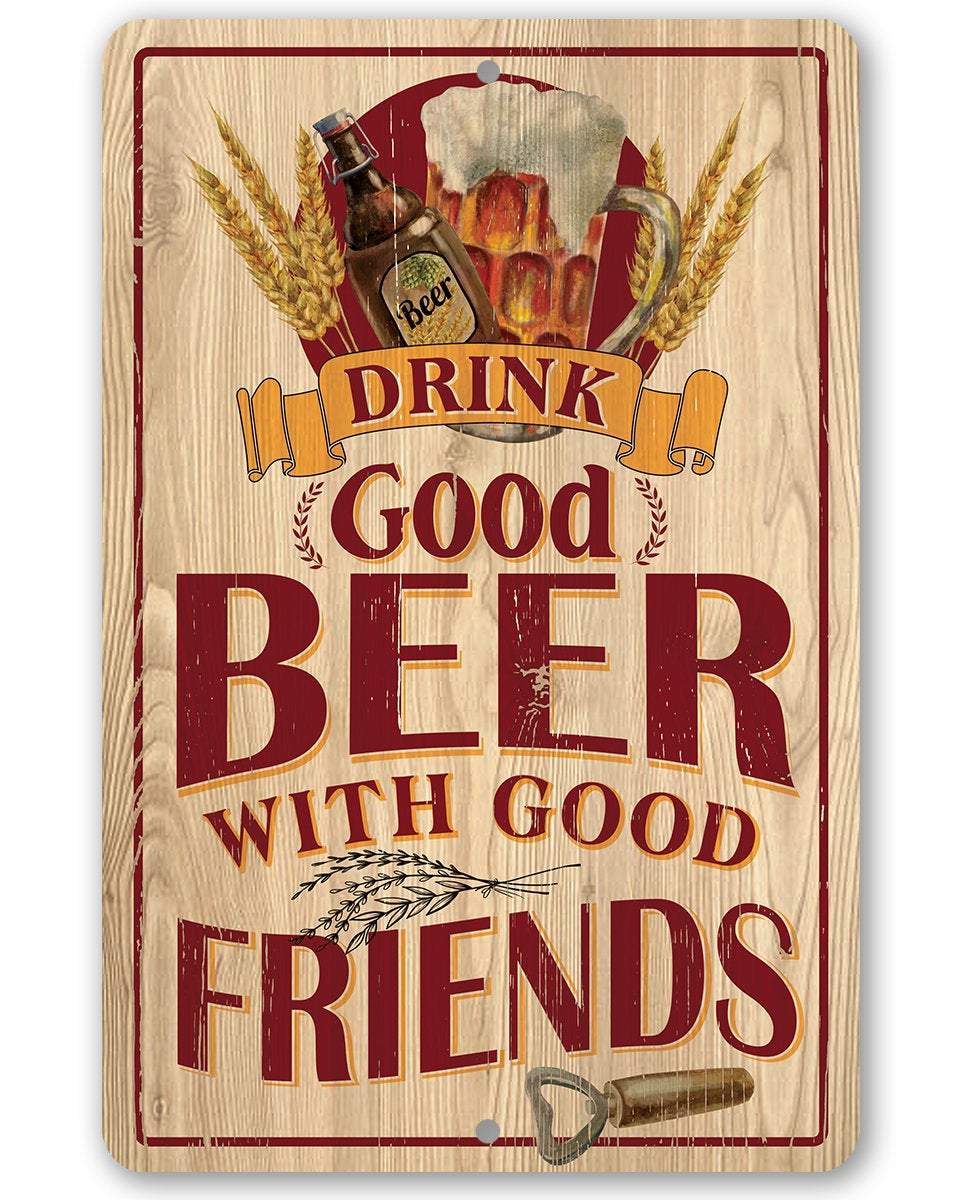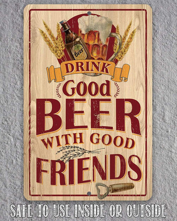 Tin - Drink Good Beer with Good Friends - 8"x12" or 12"x 18" Use Indoor/Outdoor - Durable Metal Sign - Great Bar Decor and Housewarming Gift