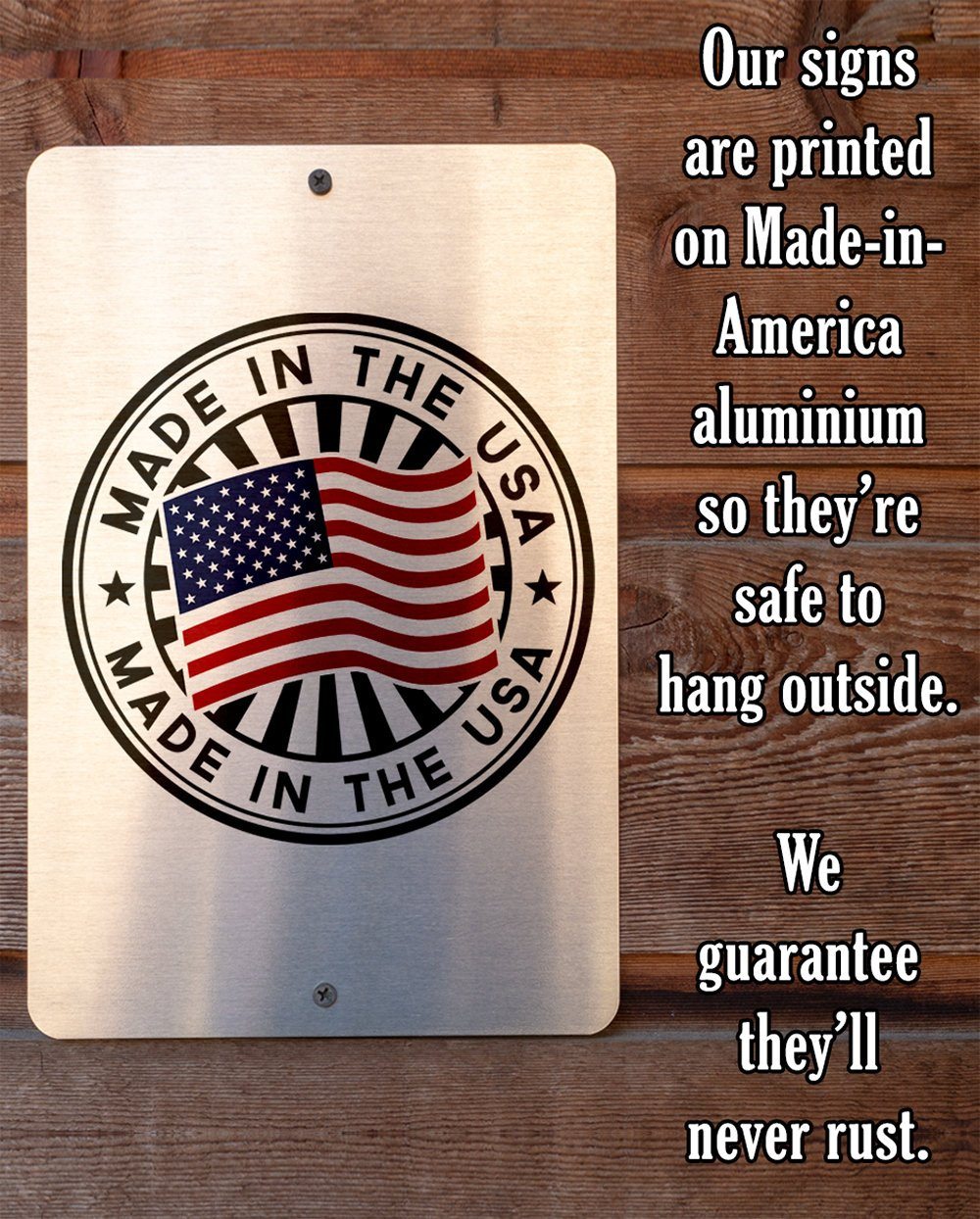 Durable - 8" x 12" or 12" x 18" Aluminum metal sign printed with epoxy ink so you can hang it inside or outside