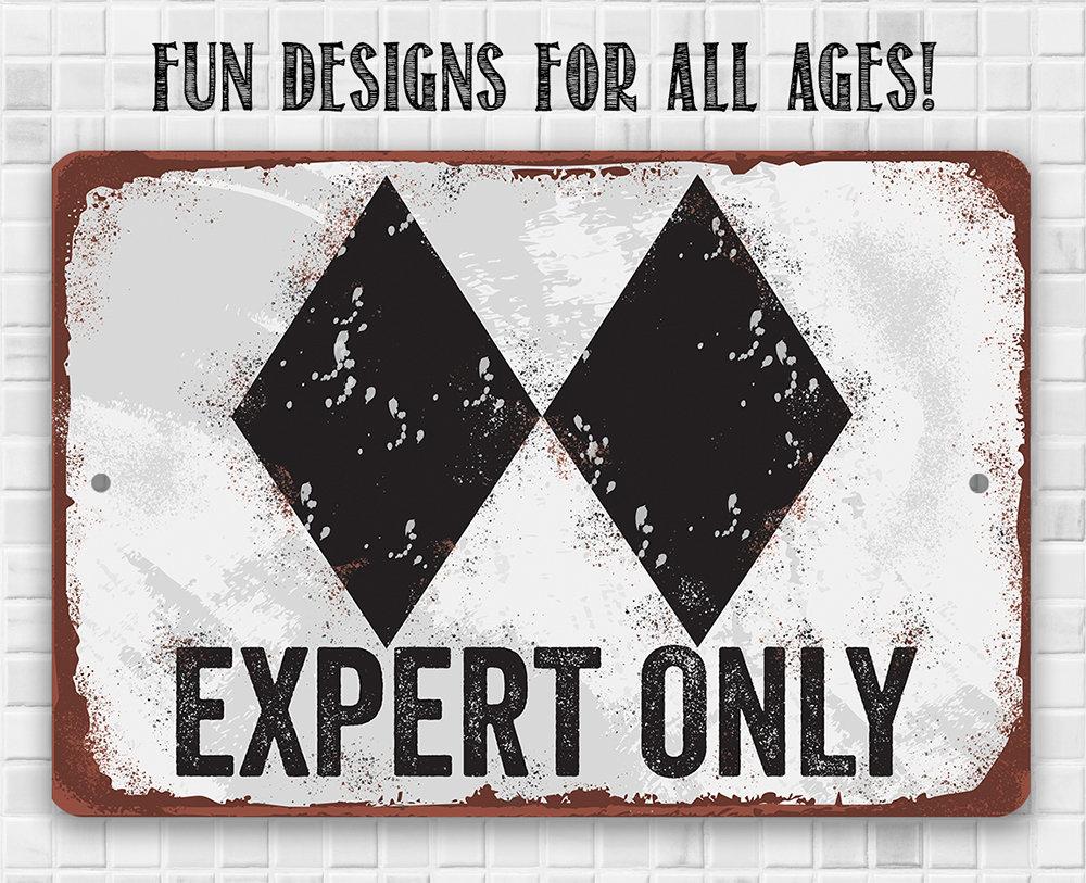Metal Sign - Expert Only Double Black Ski Slope Sign- Durable Metal Sign - 8" x 12" or 12" x 18" Use Indoor/Outdoor - Great Ski Lodge or Game Room Decor and Gift