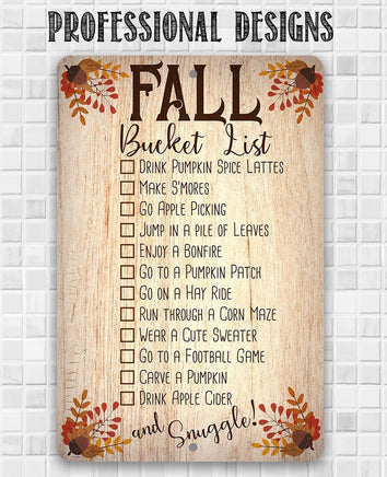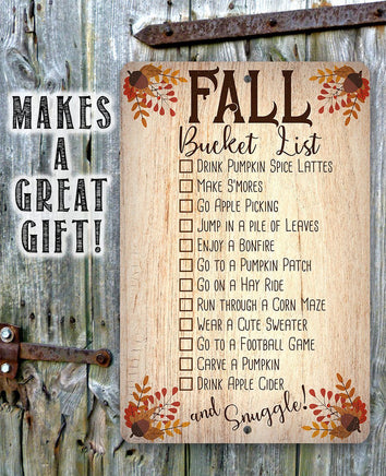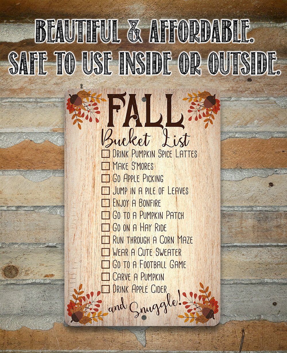 Fall Bucket List - Durable Metal Sign - 8"x12" or 12"x18" Use Indoor/Outdoor - Great Cabin Decor