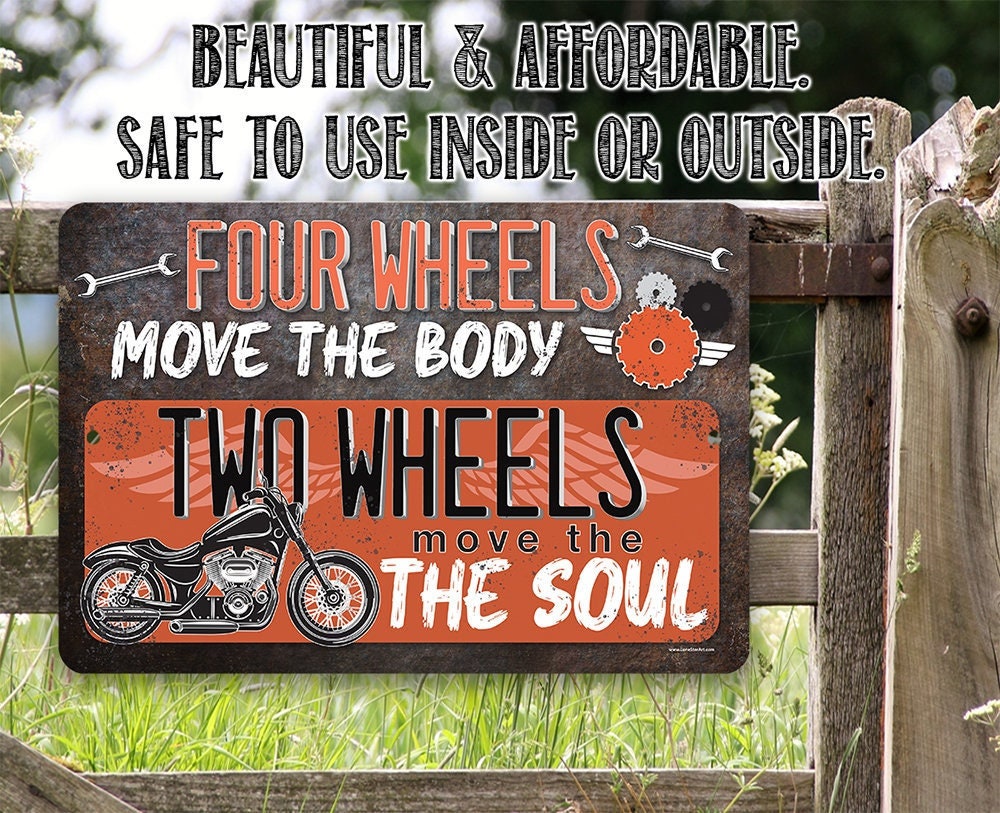 Four Wheels Move The Body, Two Wheels Move The Soul - 8" x 12" or 12" x 18" Aluminum Tin Awesome Metal Poster