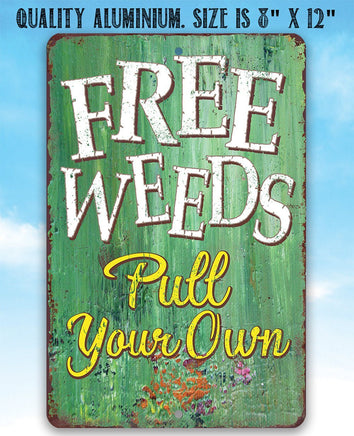 Metal Sign - Free Weeds - 8"x12" or 12"x18" Use Indoor/Outdoor - Makes a Great Yard Decor