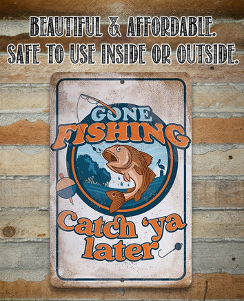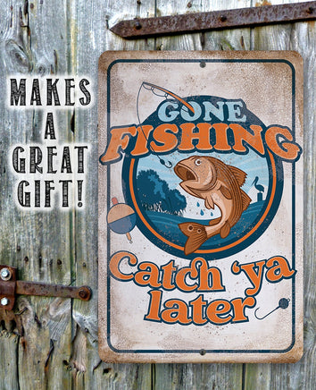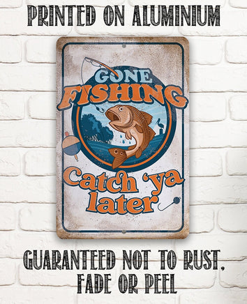 Gone Fishing Catch 'Ya Later - 8" x 12" or 12" x 18" Aluminum Tin Awesome Metal Poster