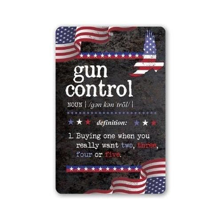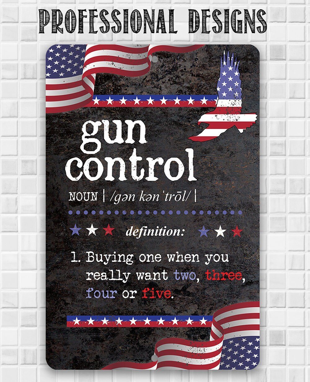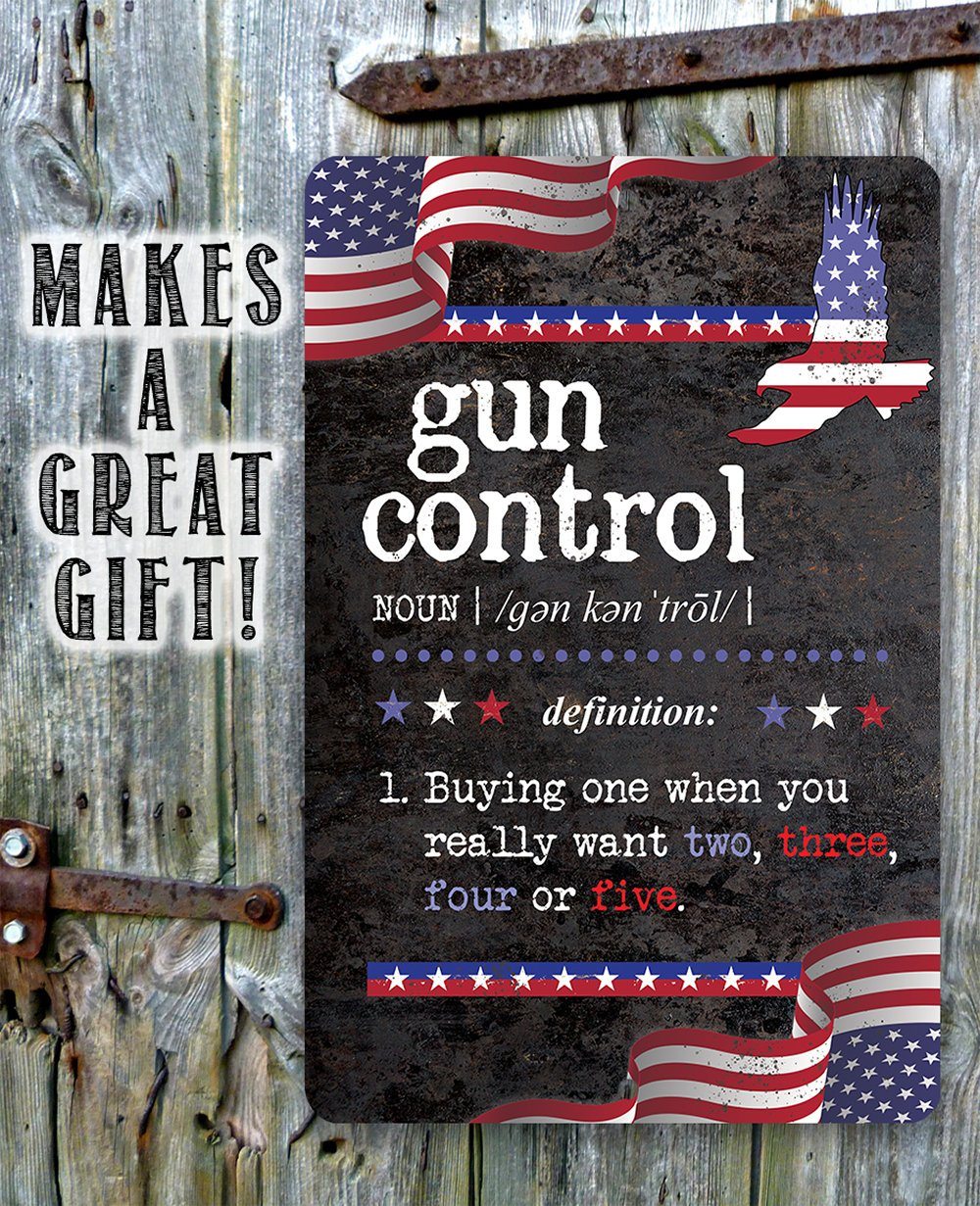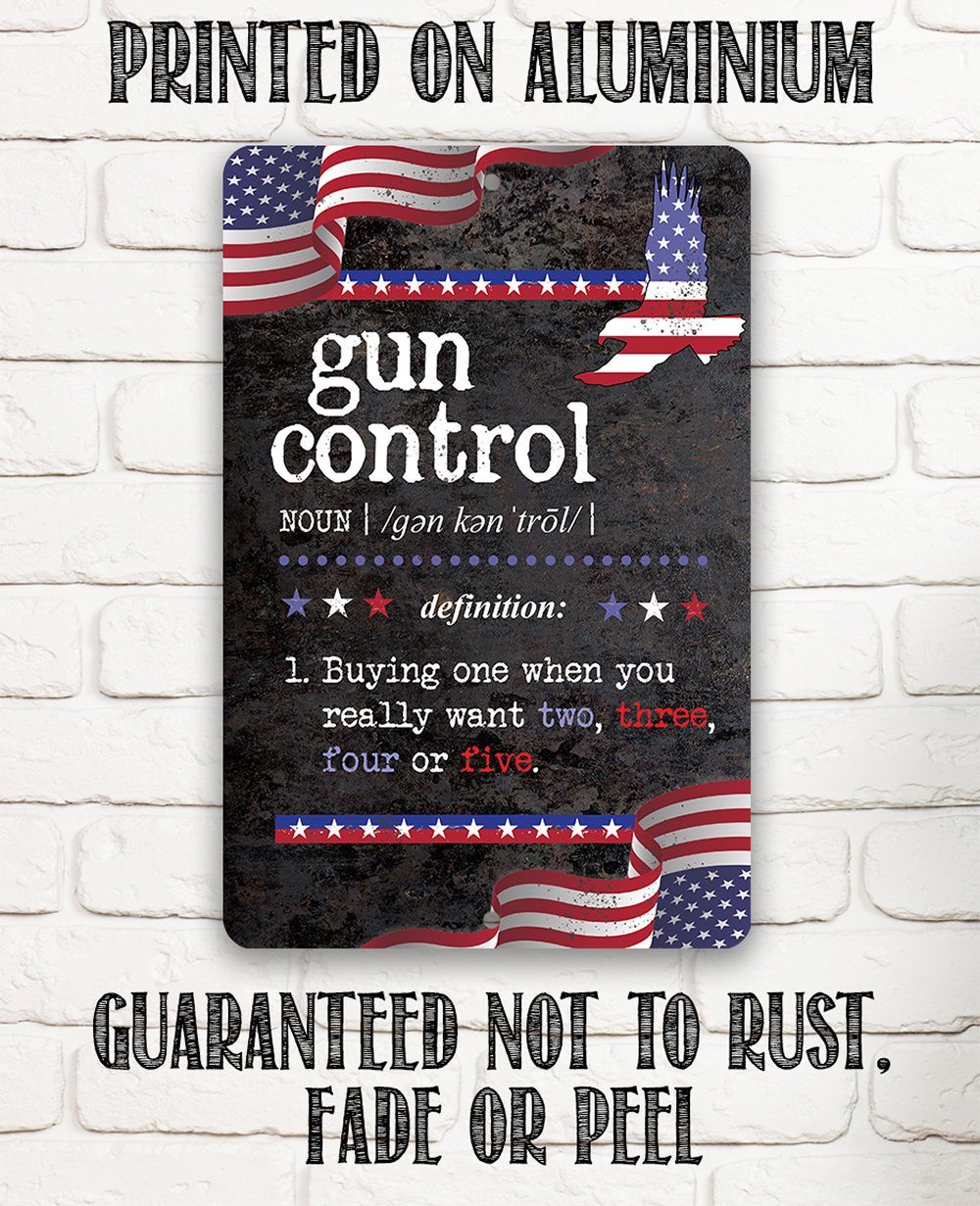 Tin - Metal Sign - Gun Control Definition - 8"x12"/12"x18" Use Indoor/Outdoor - Home Decor and Gift for Gun Enthusiasts