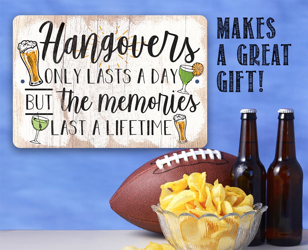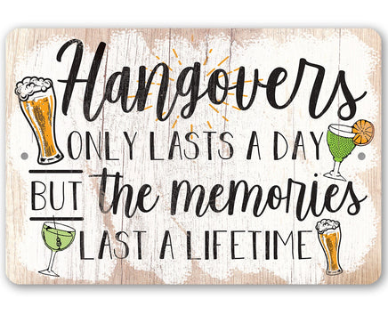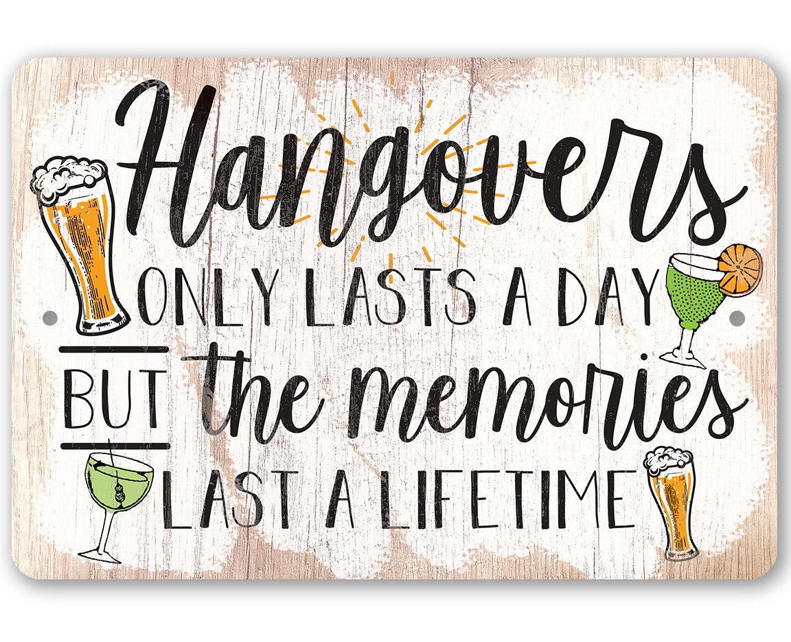 Hangovers Only Last a Day But The Memories Last a Lifetime - 8" x 12" or 12" x 18" Aluminum Tin Awesome Metal Poster
