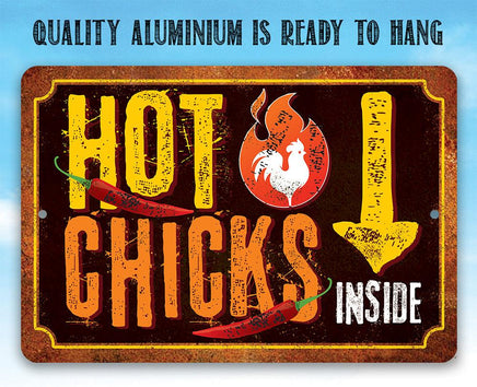 Tin - Metal Sign - Hot Chicks - 8"x12"/12"x18" Use Indoor/Outdoor - Cute and Funny Chicken Farm