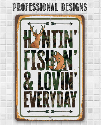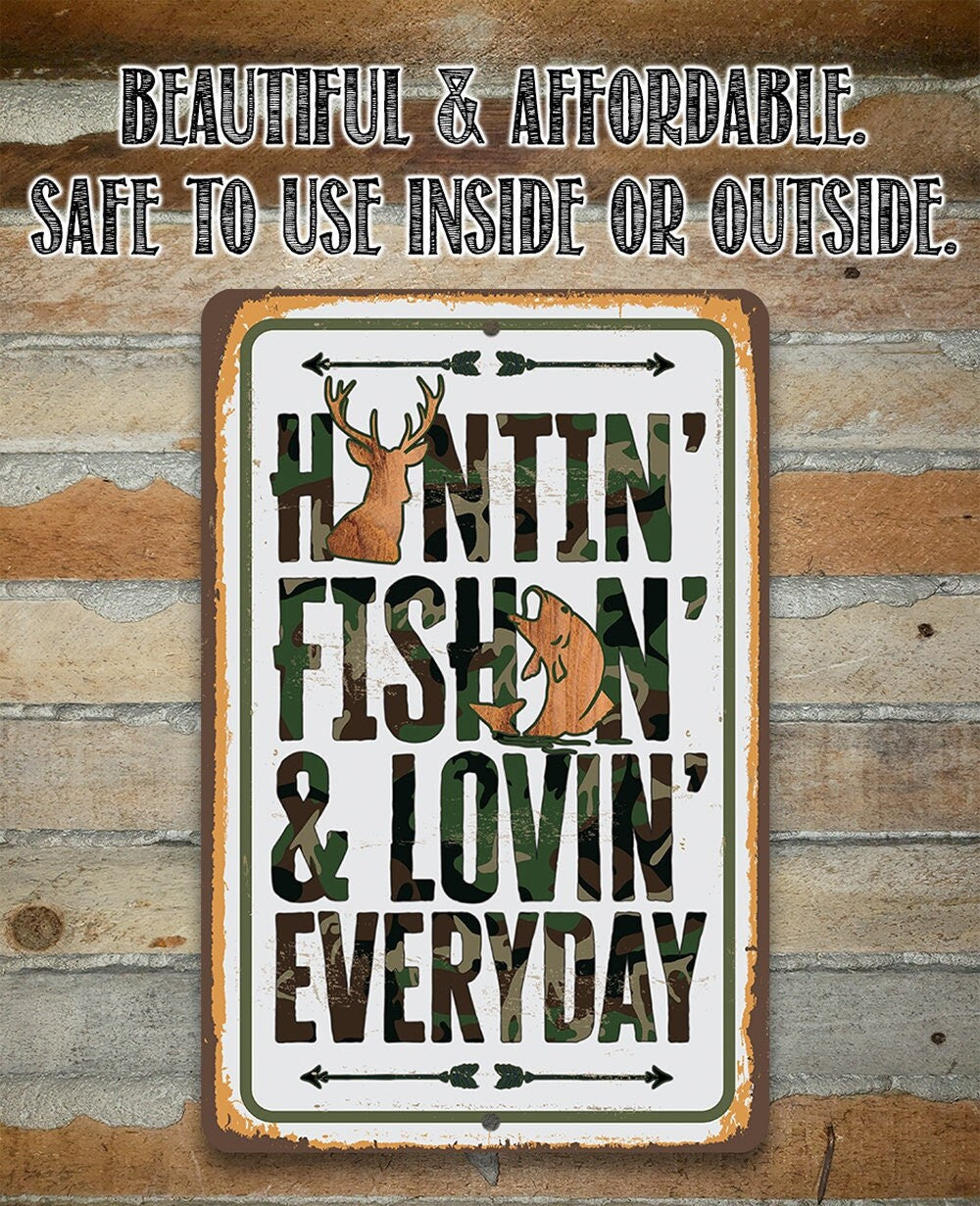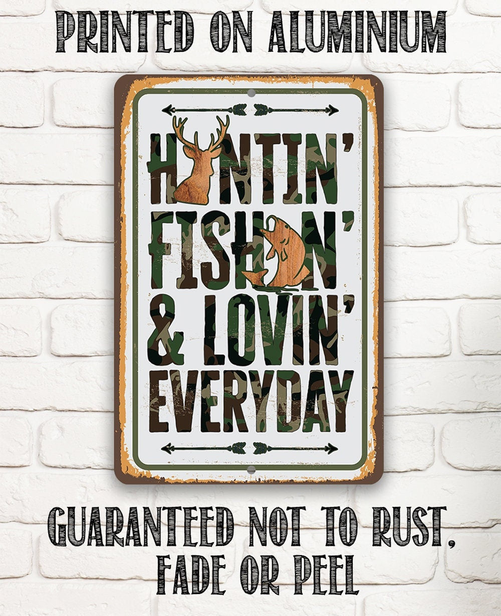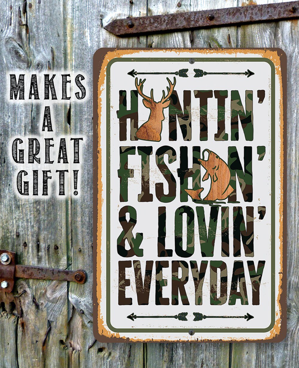 Huntin' Fishin' & Lovin' every day - 8" x 12" or 12" x 18" Aluminum Tin Awesome Metal Poster