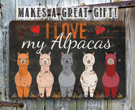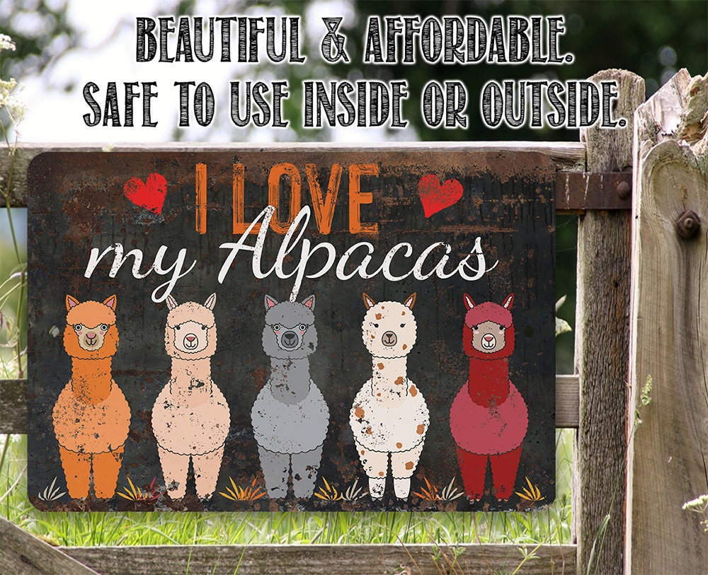 Tin - I Love My Alpacas - Metal Sign - 8"x12"/12"x18" - Use indoor/outdoor - Makes a Cute and Funny Farmhouse Decor