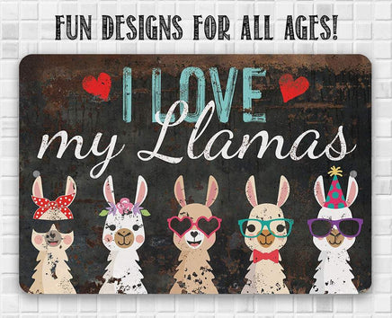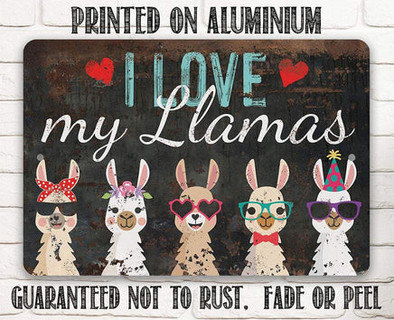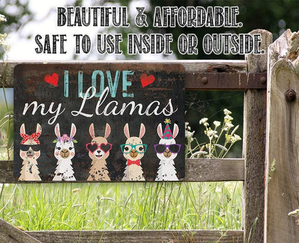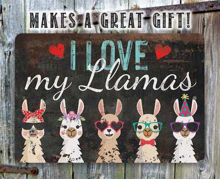 Tin - I Love My Llamas - Metal Sign - 8"x12"/12"x18" - Use indoor/outdoor - Cute and Funny Llama Farm