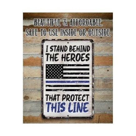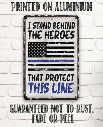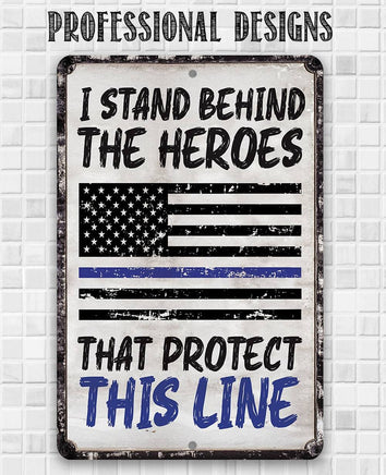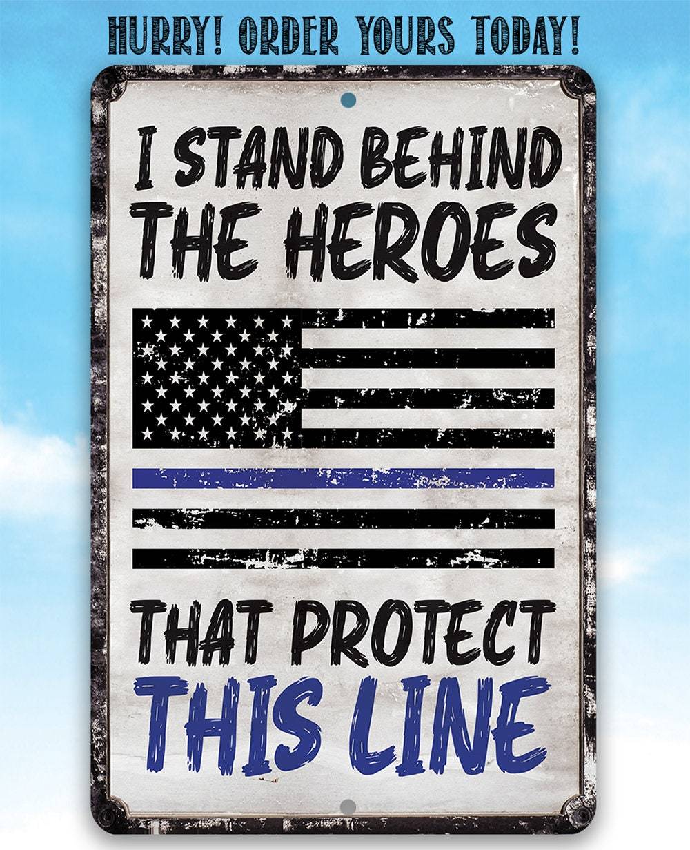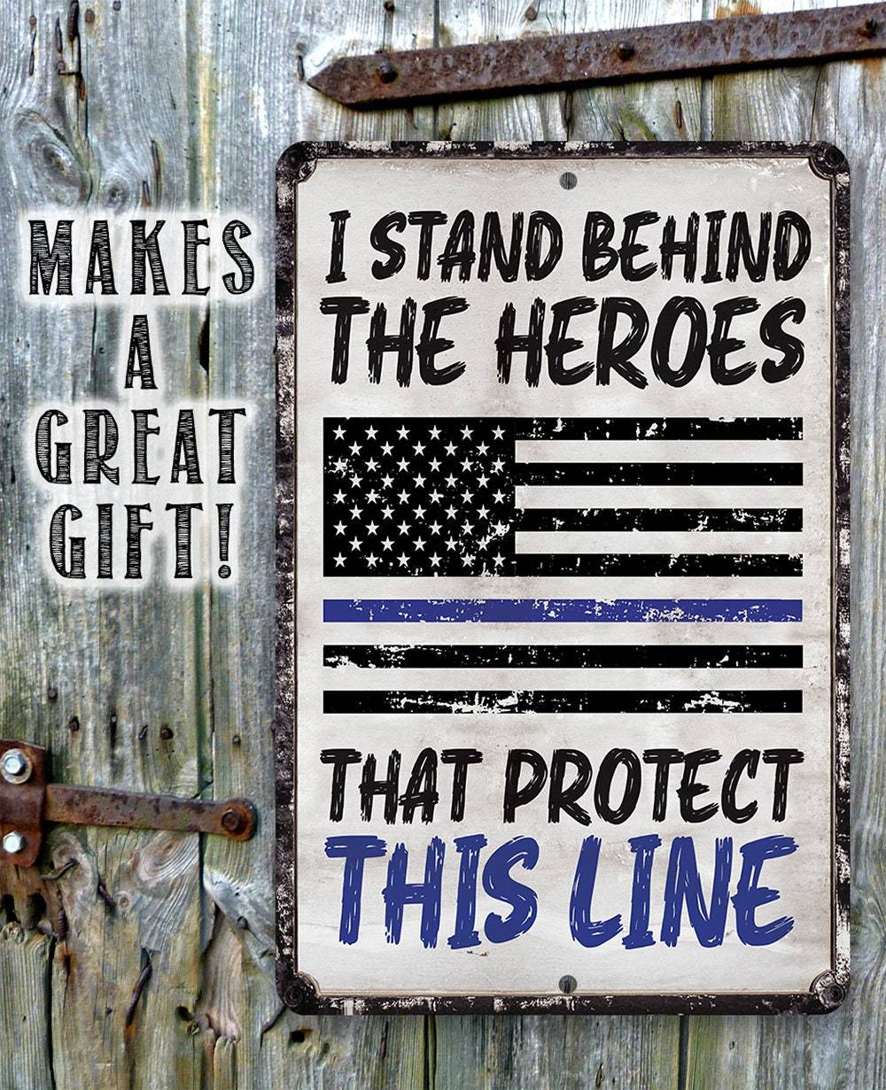 I Stand Behind The Heroes That Protect This Line - 8" x 12" or 12" x 18" Aluminum Tin Awesome Metal Poster