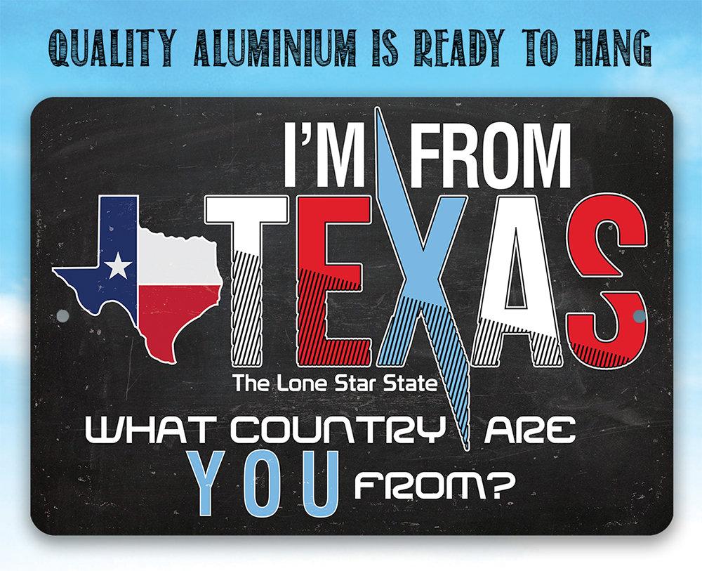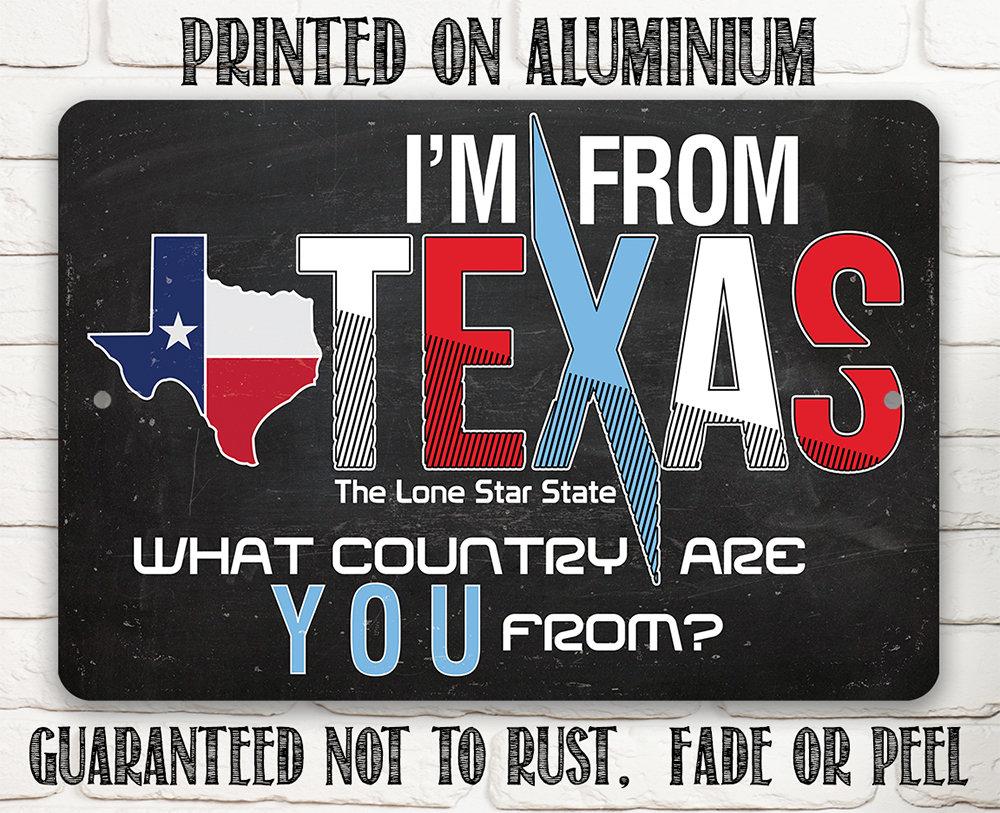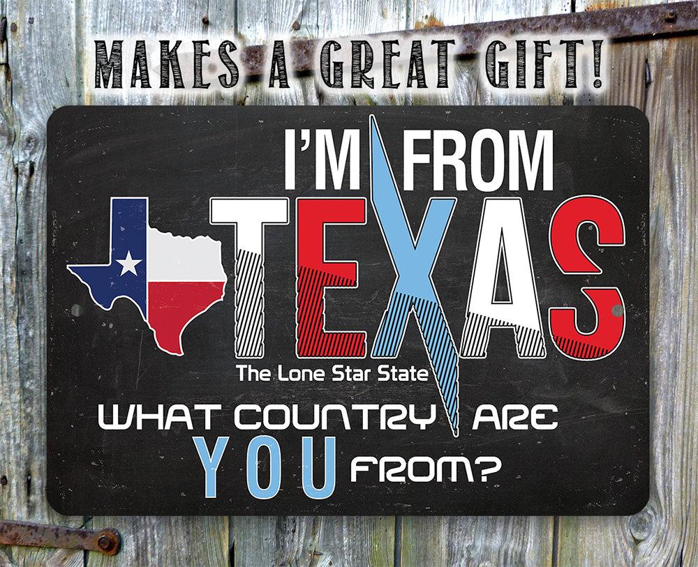 Tin - Metal Sign - I'm From Texas - 8"x12"/12"x18" Indoor/Outdoor - Great Gift to People From Texas