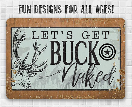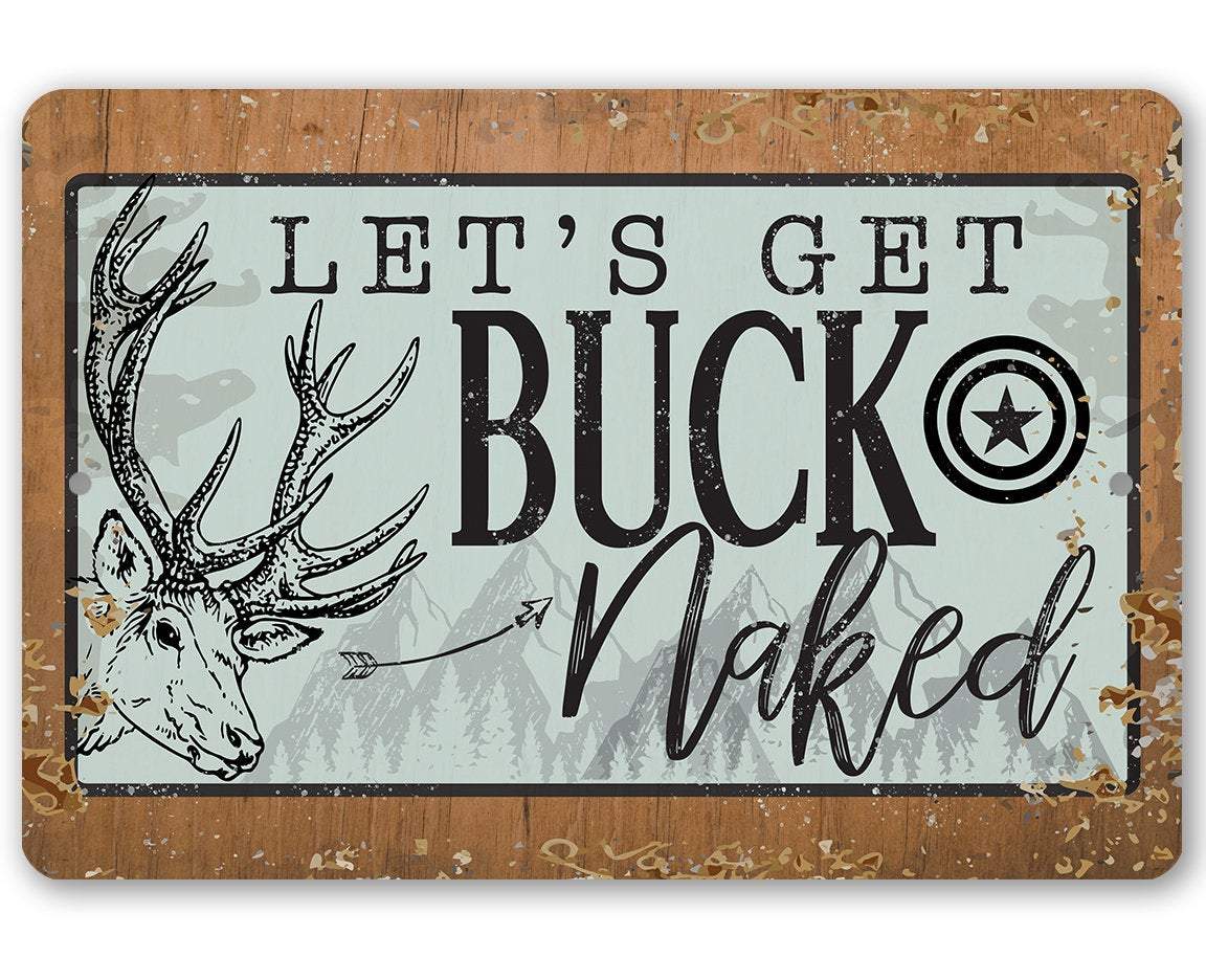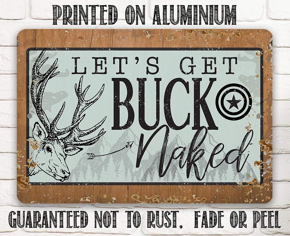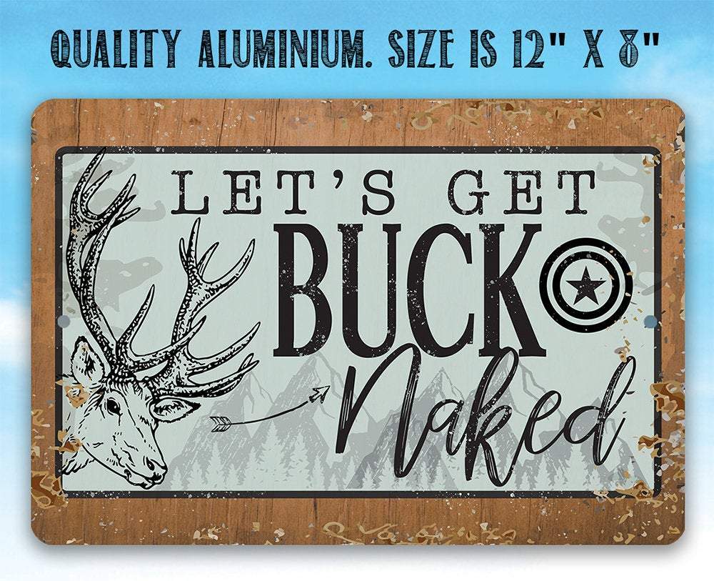 Metal Sign - Let's Get Buck Naked - Durable Metal Sign - 8" x 12" or 12" x 18" Use Indoor/Outdoor - Great Gift and Decor for Deer Hunter, Cabin, Man Cave and Home