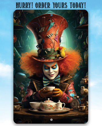 Tin - Metal Sign - Alice In Wonderland - Mad Hatter -8"x12"/12"x18" Indoor/Outdoor-Makes a Great Decor and Gift For Alice in Wonderland Fans