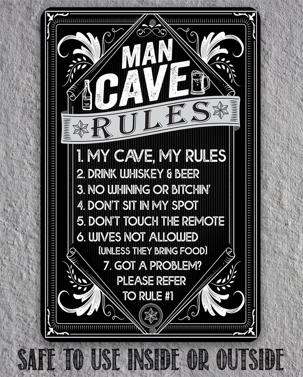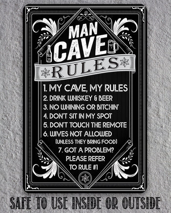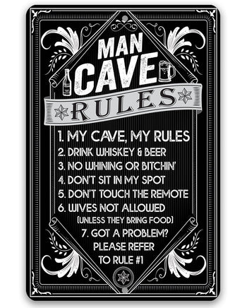 Man Cave Rules - 8" x 12" or 12" x 18" Aluminum Tin Awesome Metal Poster