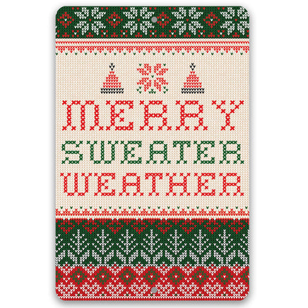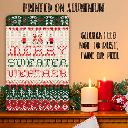 Christmas Home Decor - Merry Sweater Weather - 8" x 12" or 12" x 18" Aluminum Tin Awesome Metal Poster