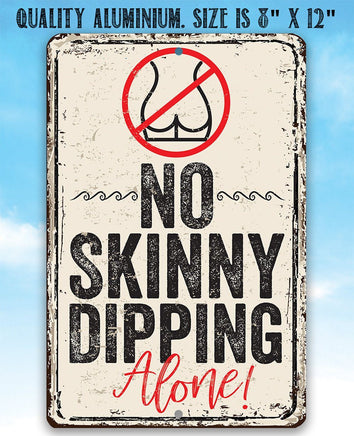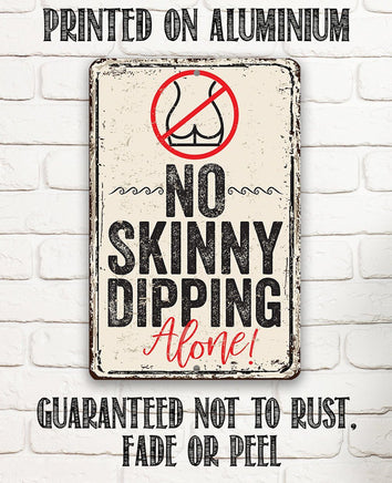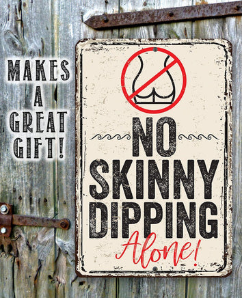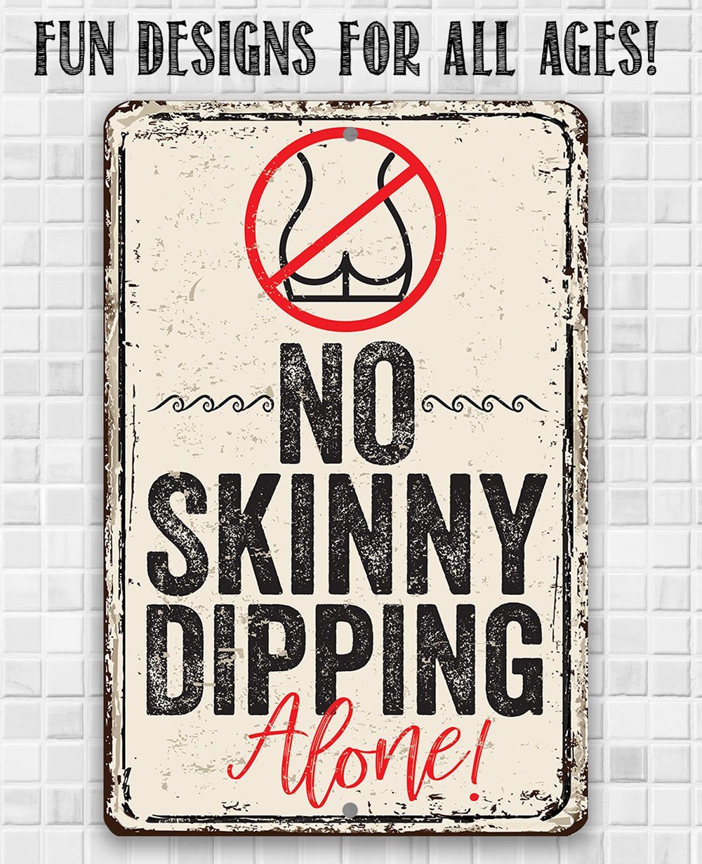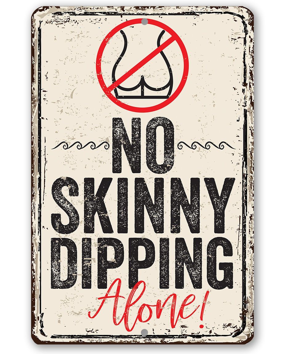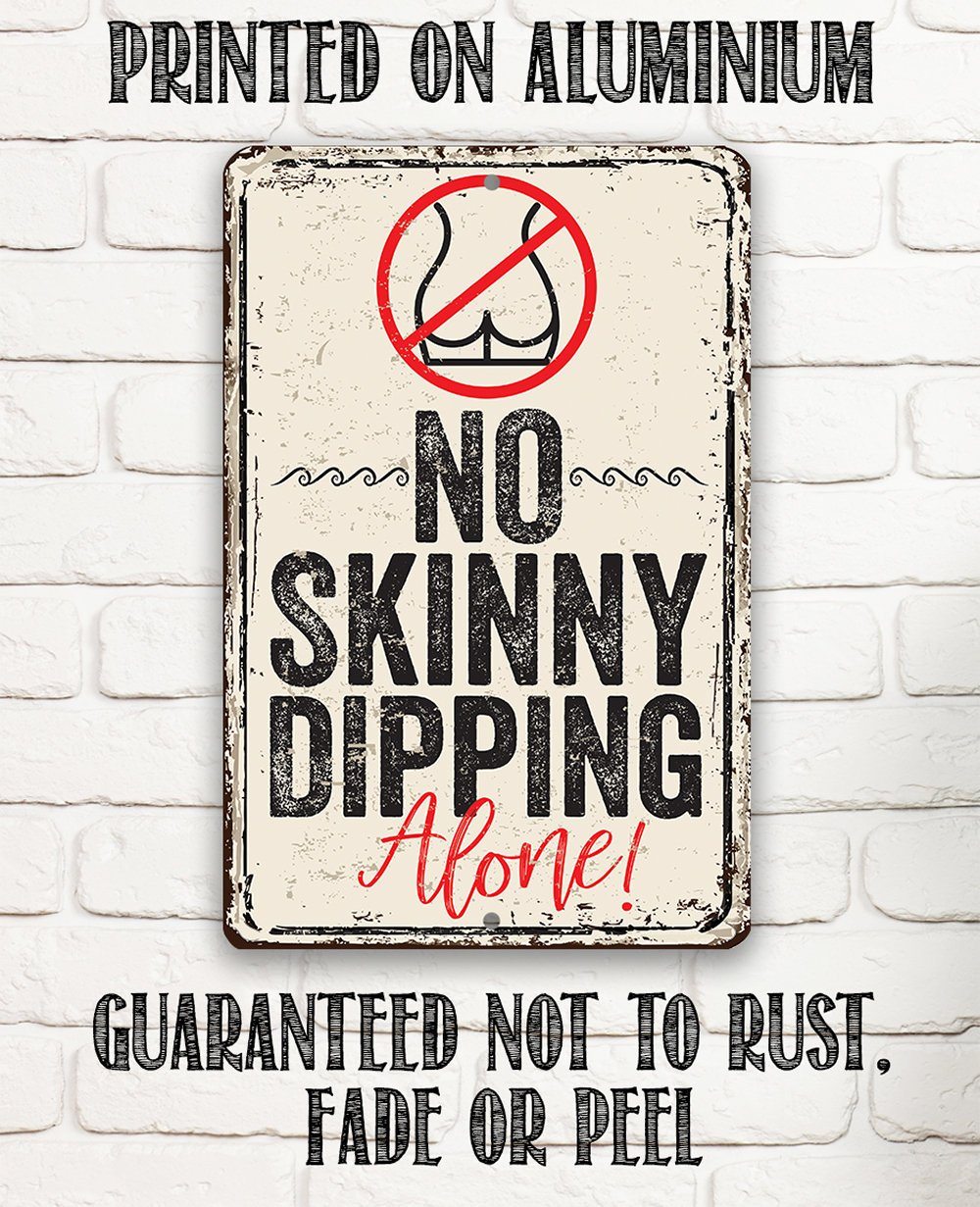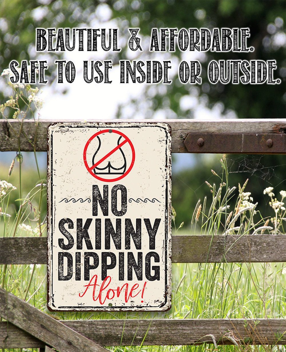 No skinny dipping alone is a metal sign that has been proudly printed in the United States. Specifically, the Lonestar State of Texas, which is a family-owned shop. Epoxy ink has been used to print on this aluminum metal sign, which makes it perfect to be hung inside or outside.