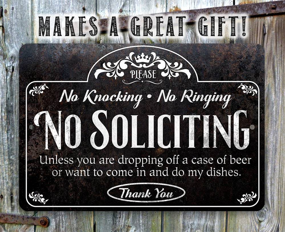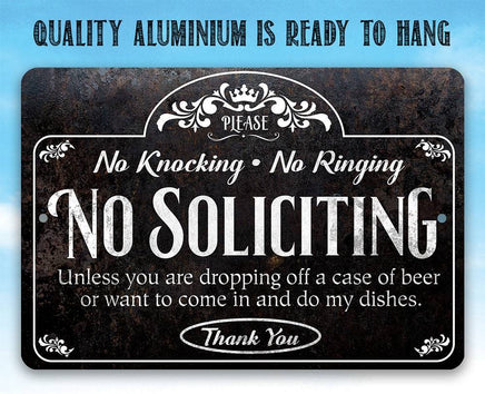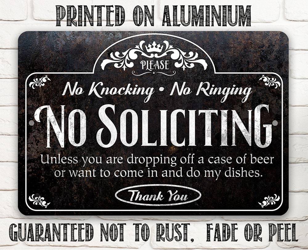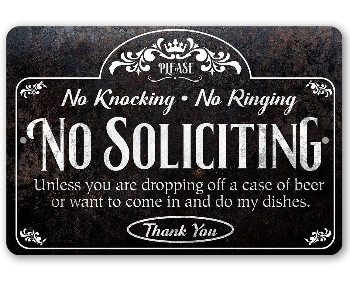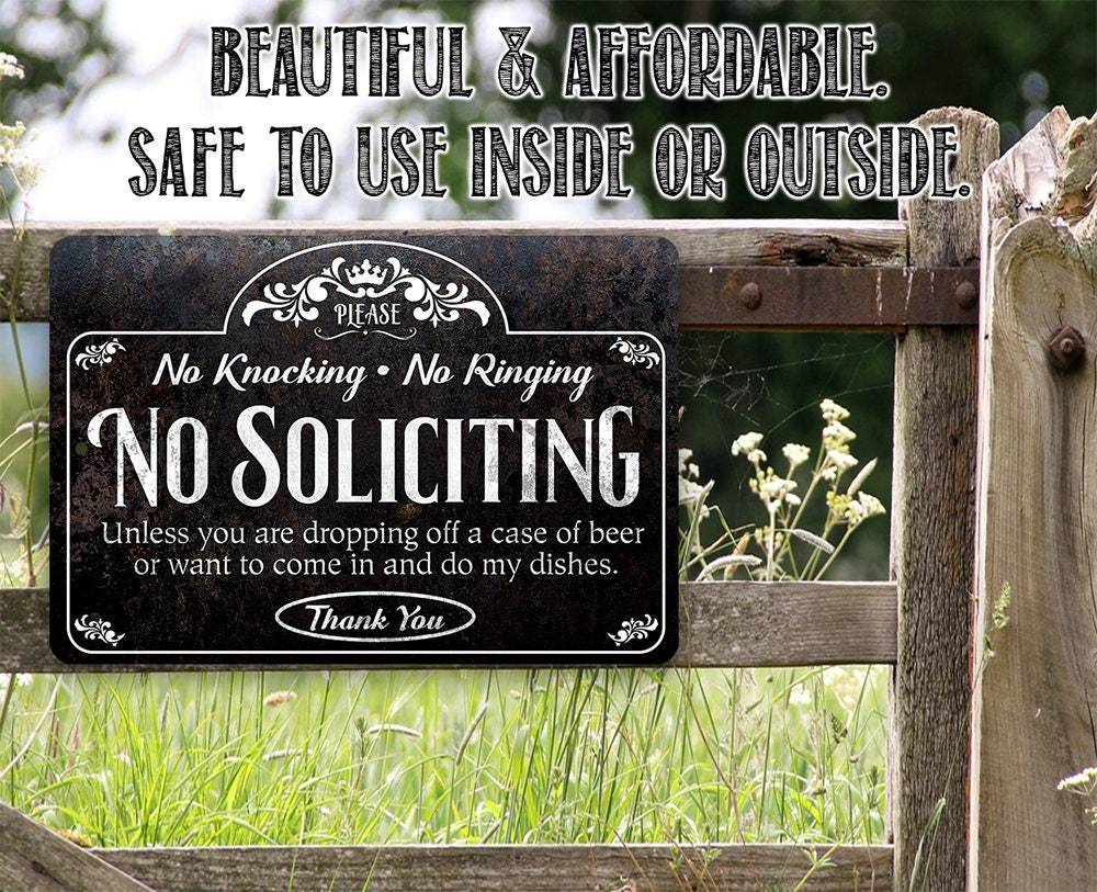 Metal Sign - No Soliciting, Knocking, and Ringing - Durable - Use Indoor/Outdoor - Great Artsy No Soliciting Sign for Home and Offices