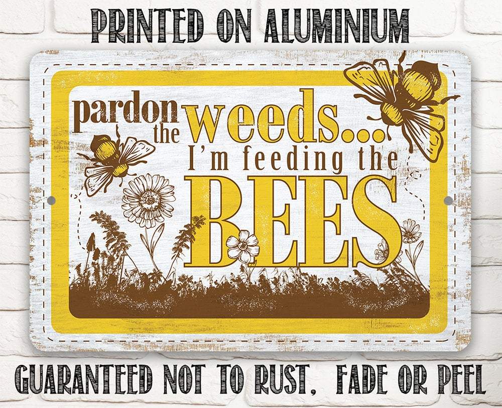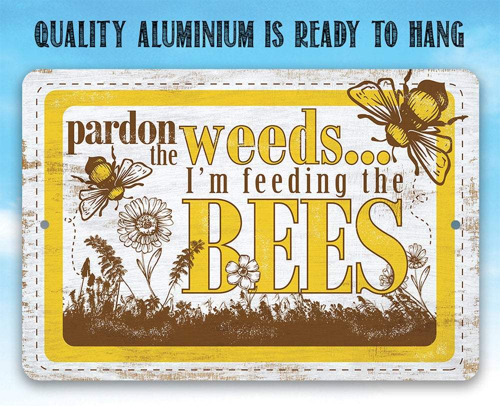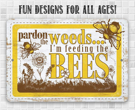 Pardon the Weeds I'm Feeding the Bees - 8" x 12" or 12" x 18" Aluminum Tin Awesome Metal Poster