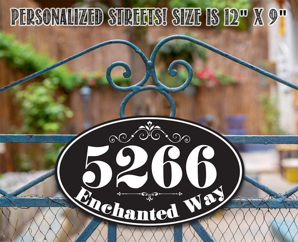 Personalized Metal Address Plaque - Oval Durable Metal Sign - 12" x 7" Display Address and Street Name - Custom Wall Mounted - Great Housewarming & Realtor Gift