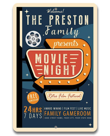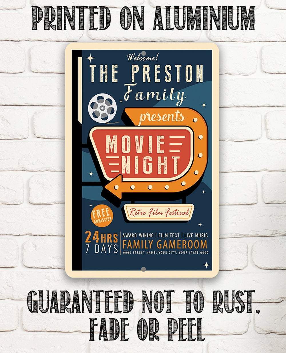 Personalized Metal Sign -Movie Room Metal Sign-Durable Metal Sign-8" x 12" or 12" x 18" Use Indoor/Outdoor-Great Gift and Home Theater Decor