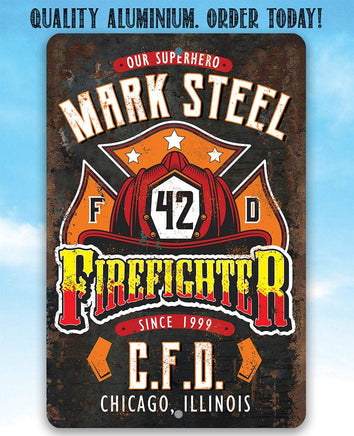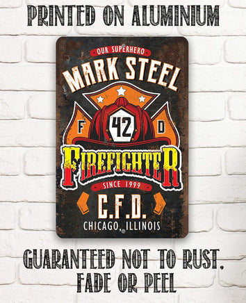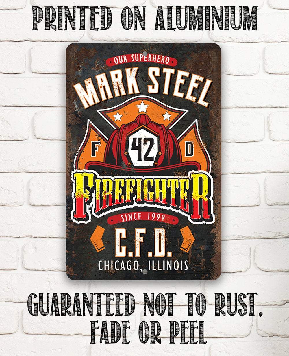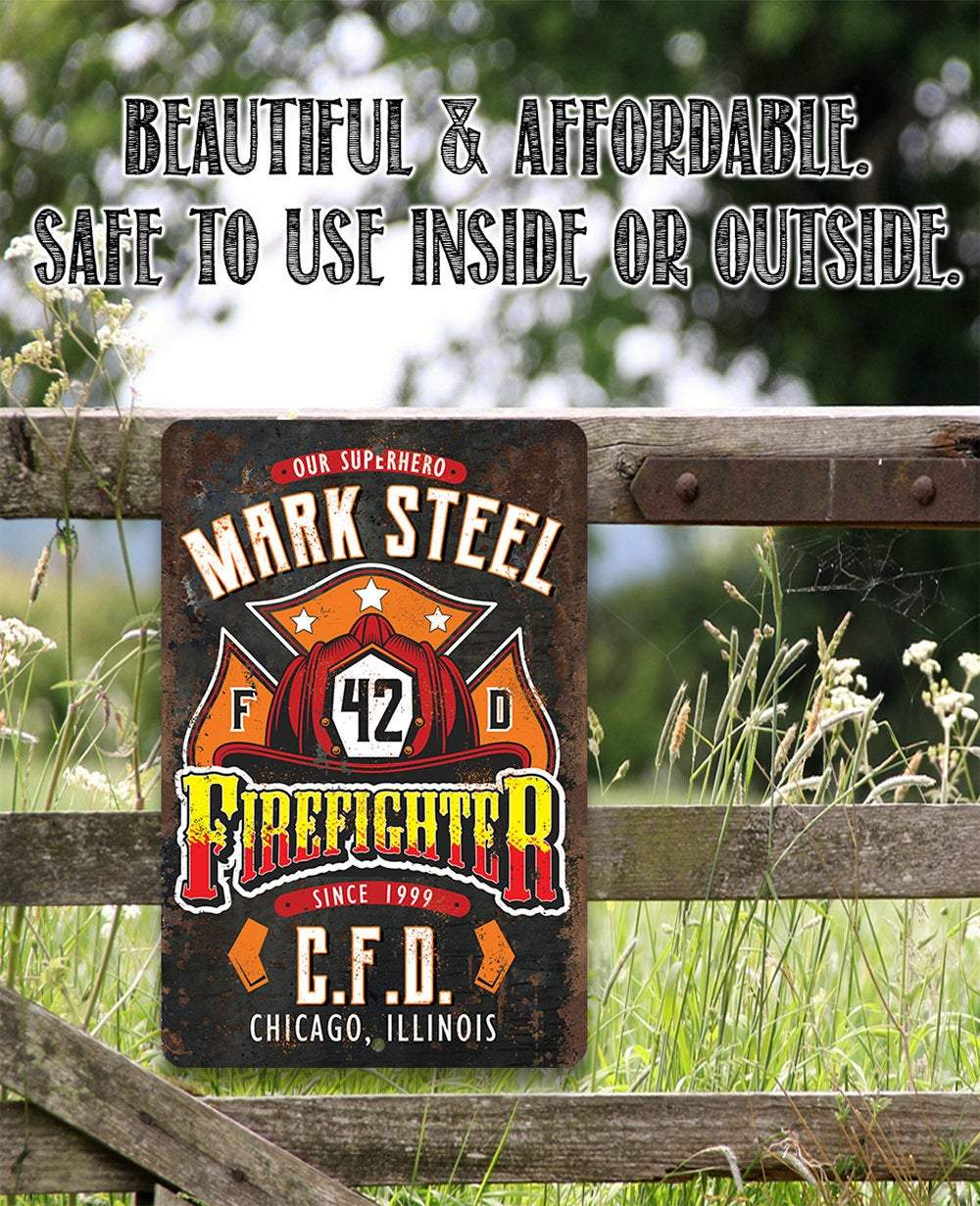 Personalized Firefighter Metal Sign-Fishing Supply -Tin -8x12" / 12x18" Use Indoor/Outdoor -Housewarming Gift to Firefighters