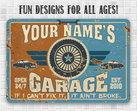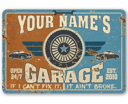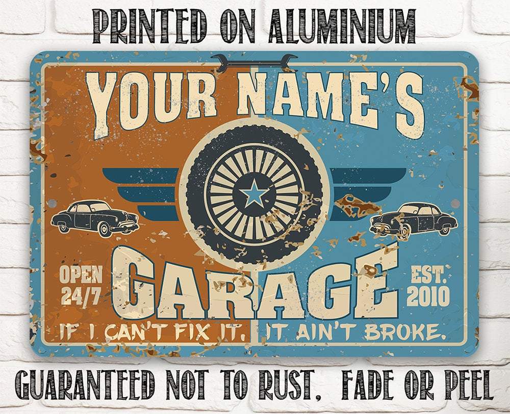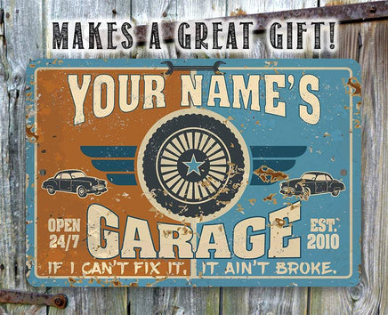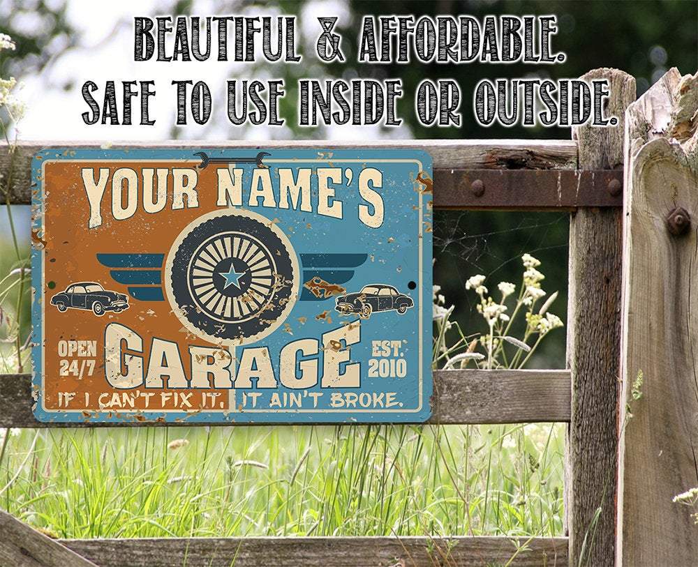 Personalized Garage Metal Sign - Durable Metal Sign - 8" x 12" or 12" x 18" Use Indoor/Outdoor - Great Auto Shop Decor and Gift for Mechanic