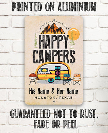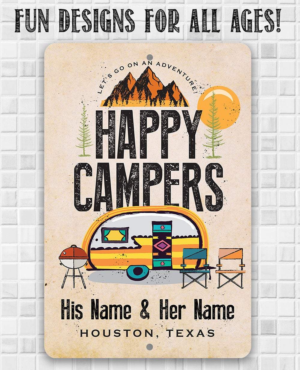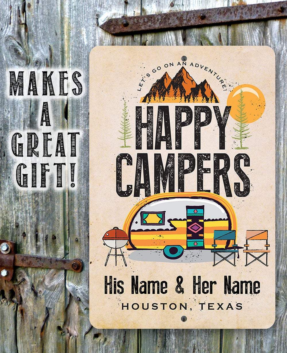 Personalized Happy Campers Metal Sign -Durable - 8" x 12" or 12" x 18" Use Indoor/Outdoor-Great Gift and Decor for Cabin, RV and Motor Home