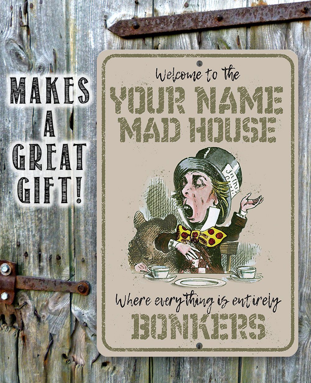 Personalized Metal Sign - Mad Hatter - Tin - 8x12" or 12x18" Use Indoor/Outdoor - Great Gift & Decor