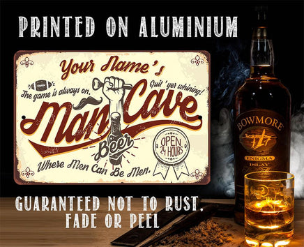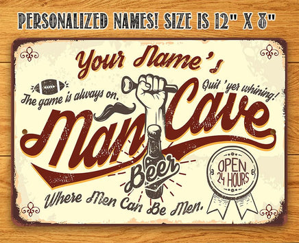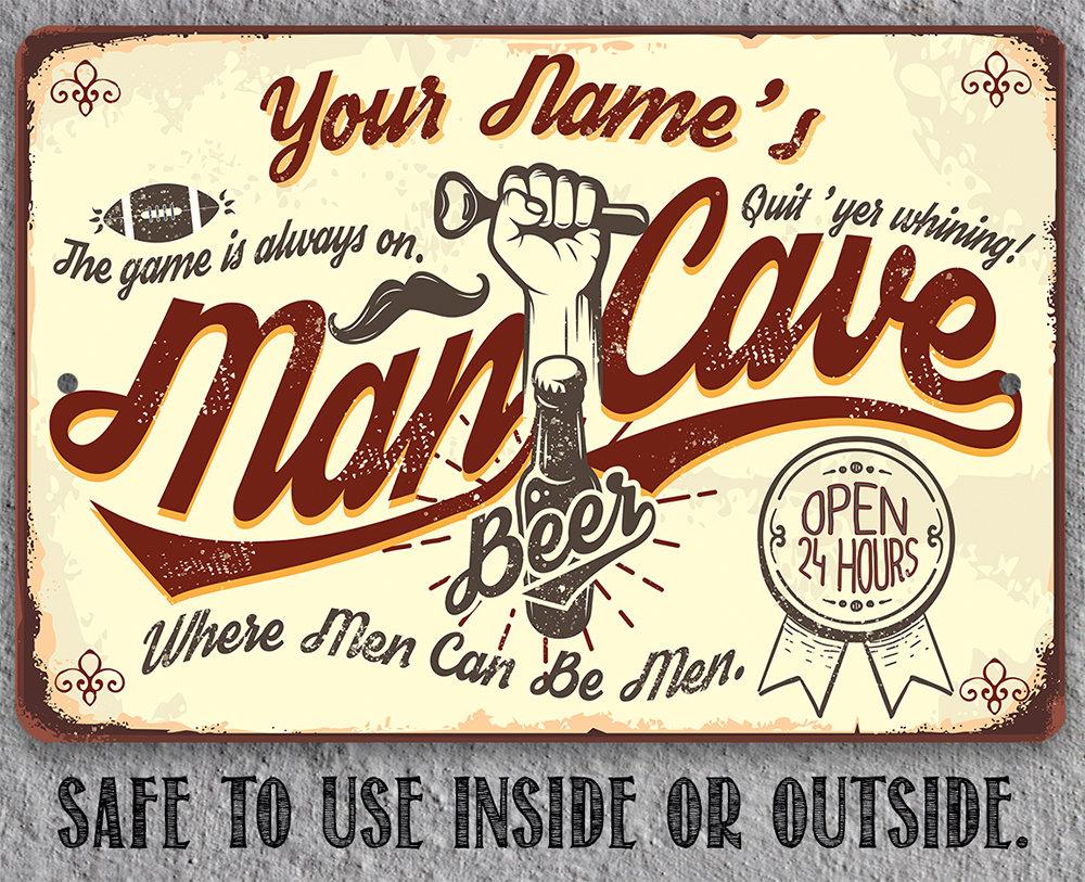 Personalized Man Cave Decor - Durable Metal Sign - 8" x 12" or 12" x 18" Use Indoor/Outdoor - Father's Day and Birthday Gift and Home Decor