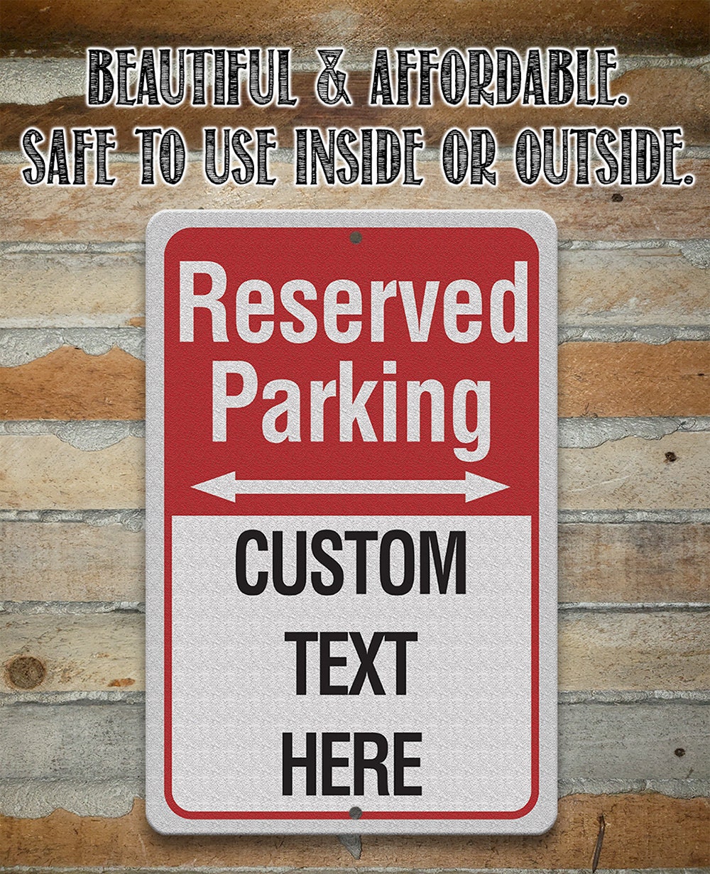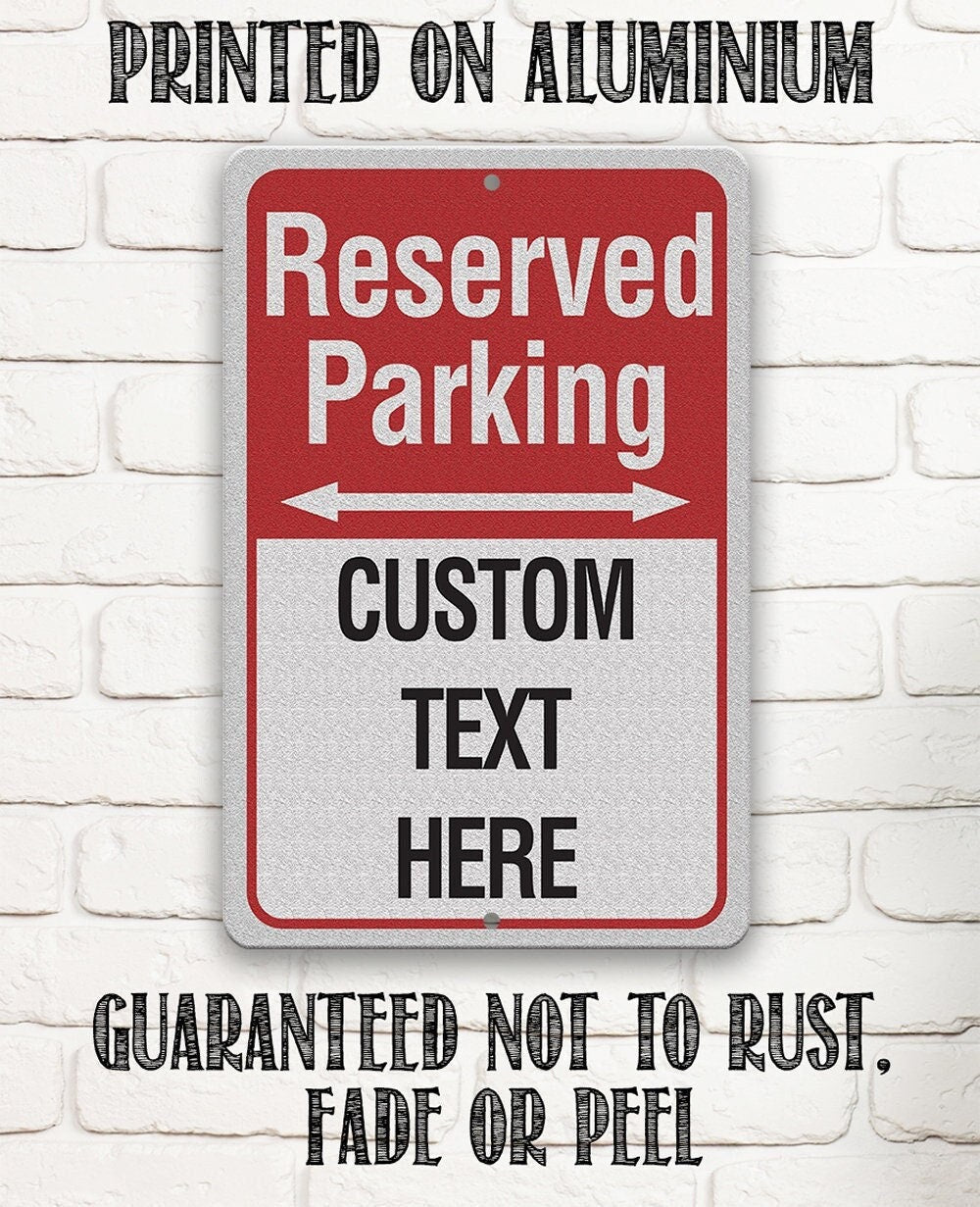 Tin- Personalized - Reserved Parking - Metal Sign - 8" x 12" or 12" x 18" Indoor/Outdoor-Parking Lot, Area, Spot, and Garage Customized Sign