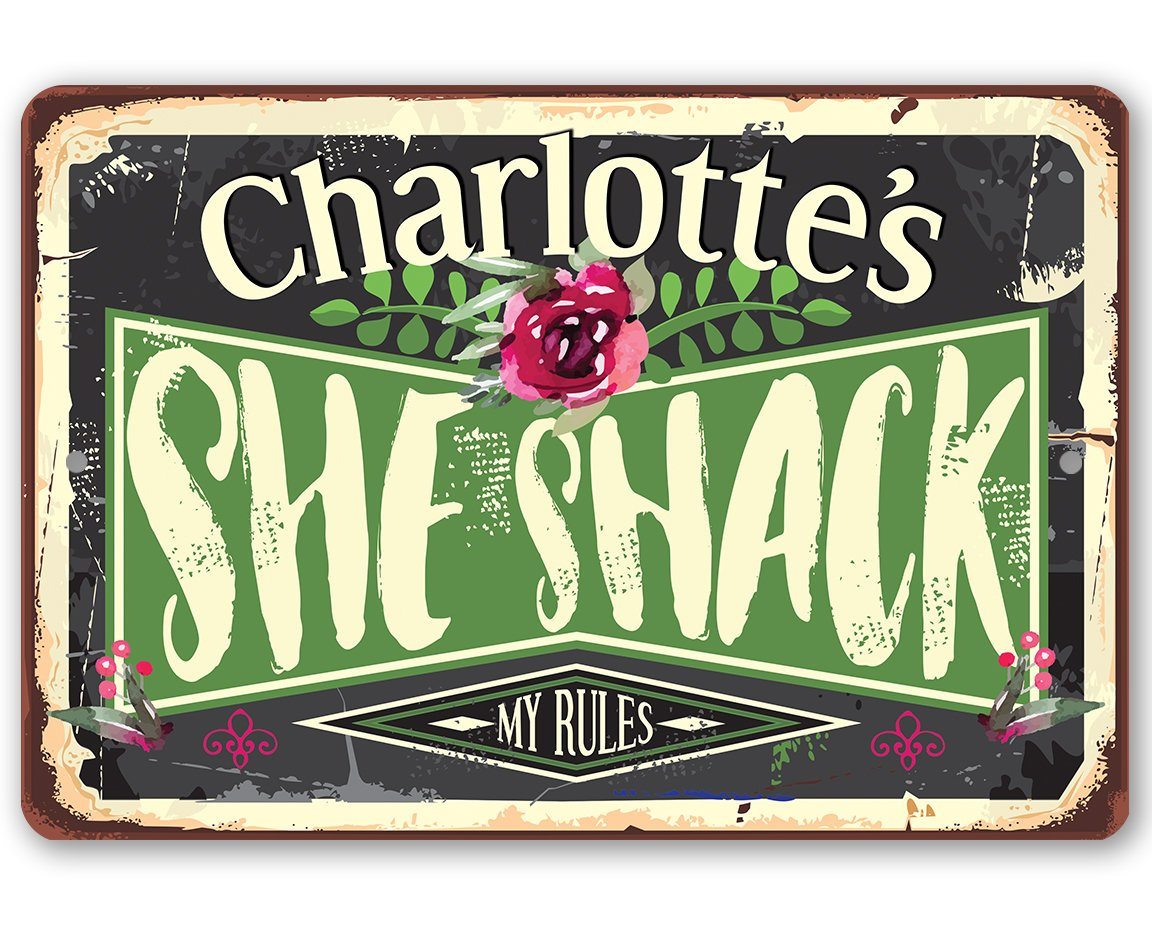 Personalized She Shack - Durable Indoor/Outdoor Metal Sign - 8" x 12" or 12" x 18" - Great Gift and Decor for She Shed, Oasis and Sanctuary