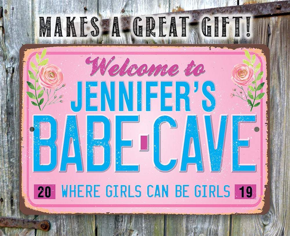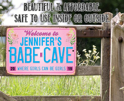 Personalized Welcome to (Your Name) Babe Cave Where Girls Can be Girls-Durable Metal Sign-8" x 12" or 12" x 18" Use Indoor/Outdoor-Great Gift/Decor for She Shed, Bedroom, Craft Room & Dorm